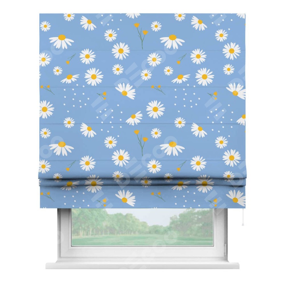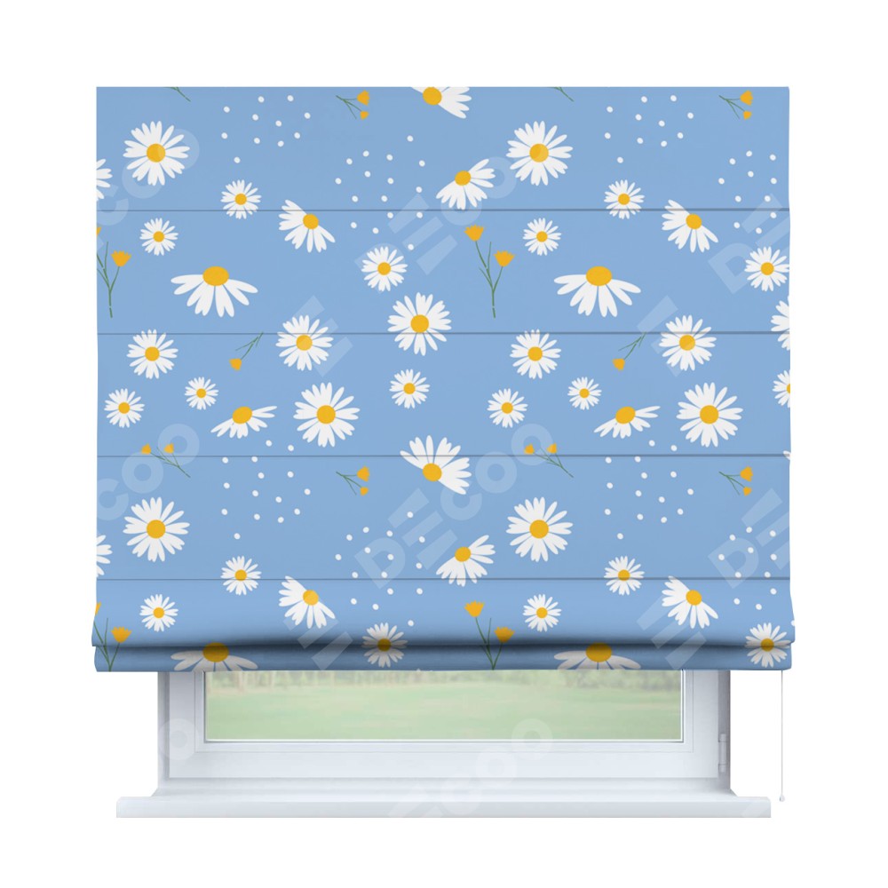Римская штора «Кортин» для проема «Ромашки на голубом»