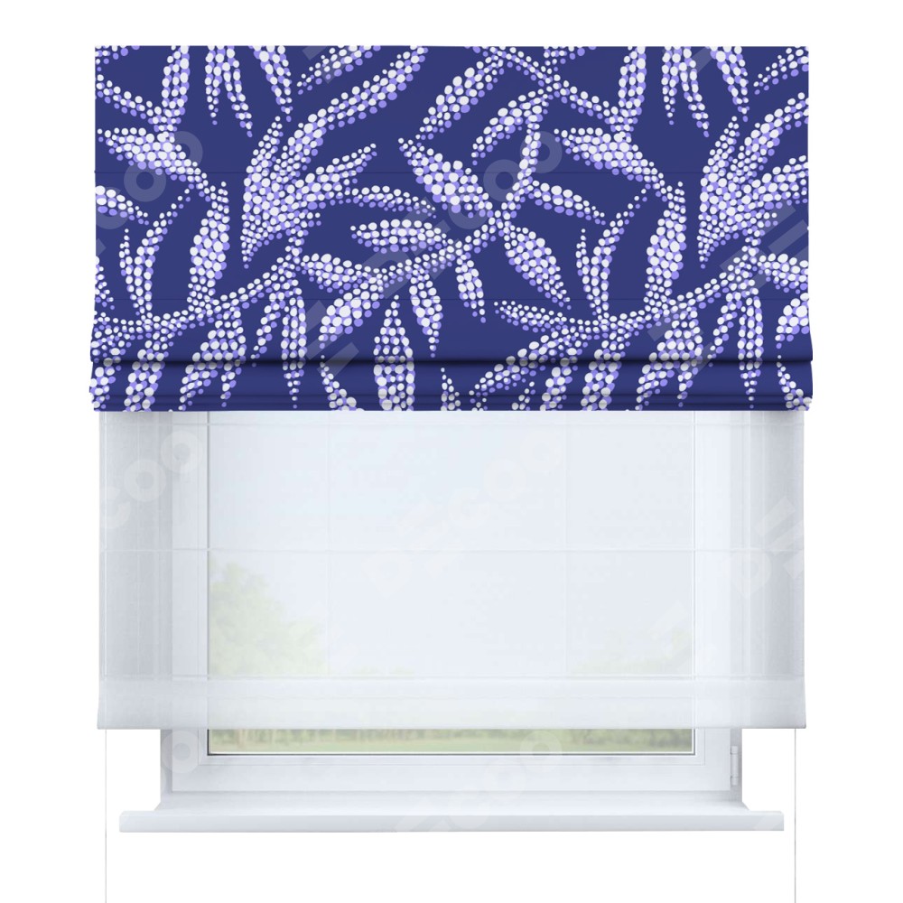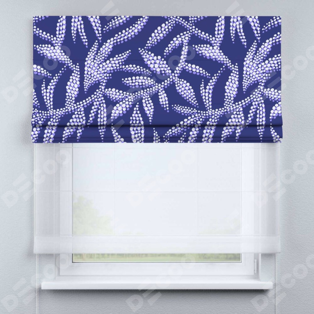 Римская штора день-ночь производителя «Cortin», используется для проёма, пошита из двух полотен, с лицевой блэкаут с нанесением сублимационной печати «Ночные цветы», вторая ткань тюль (по стандарту комплектуется тюль белого цвета артикул V-01). Имеет универсальный механизм и подходит для монтажа: на потолок, на стену и в нишу.