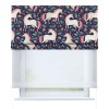 Римская штора день-ночь производителя «Cortin», используется для проёма, пошита из двух полотен, с лицевой блэкаут с нанесением сублимационной печати «Сказочные единороги», вторая ткань тюль (по стандарту комплектуется тюль белого цвета артикул V-01). Имеет универсальный механизм и подходит для монтажа: на потолок, на стену и в нишу.