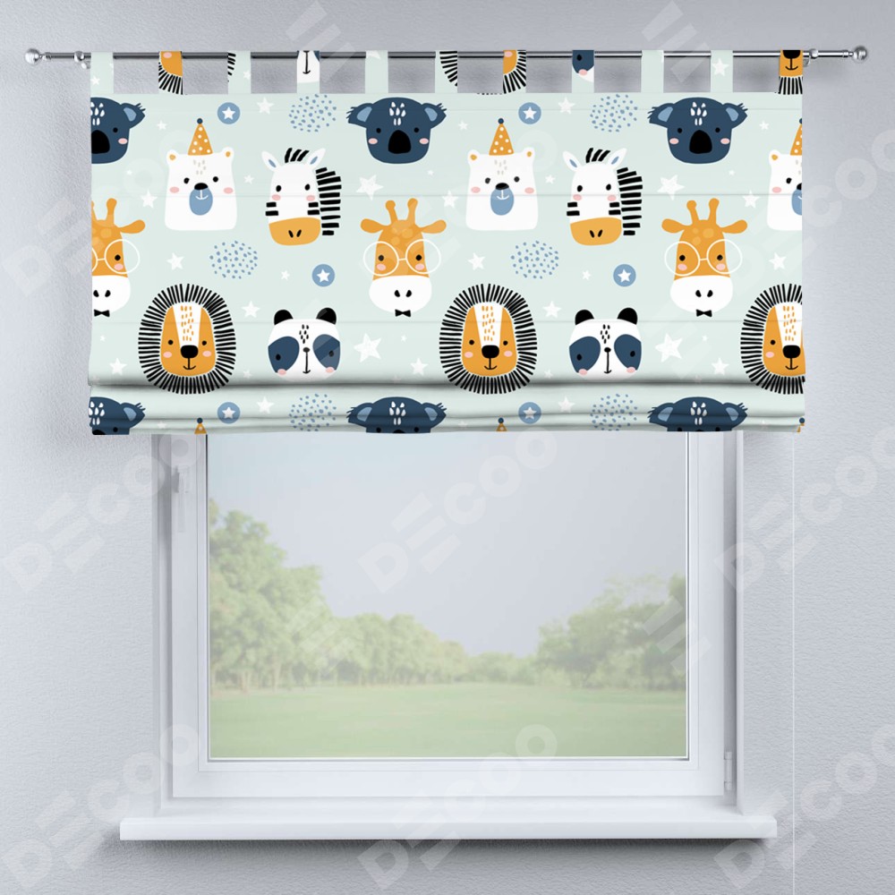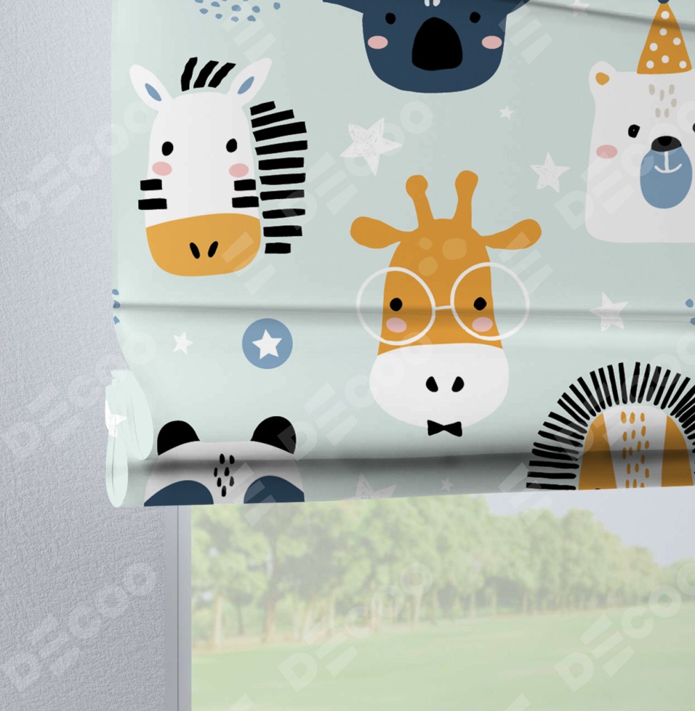 Римская штора производителя «Cortin», используется для проёма, пошита из ткани блэкаут с нанесением сублимационной печати «Чудесный зоопарк». Данная модель пошита на петлях, комплектуется на выбор круглым карнизом и подходит для монтажа на стену. Римская штора на петлях имеет простую систему регулировки высоты, отличительным преимуществом данной модели является простой способ монтажа. Достаточно повесить ее на трубу и штора готова!