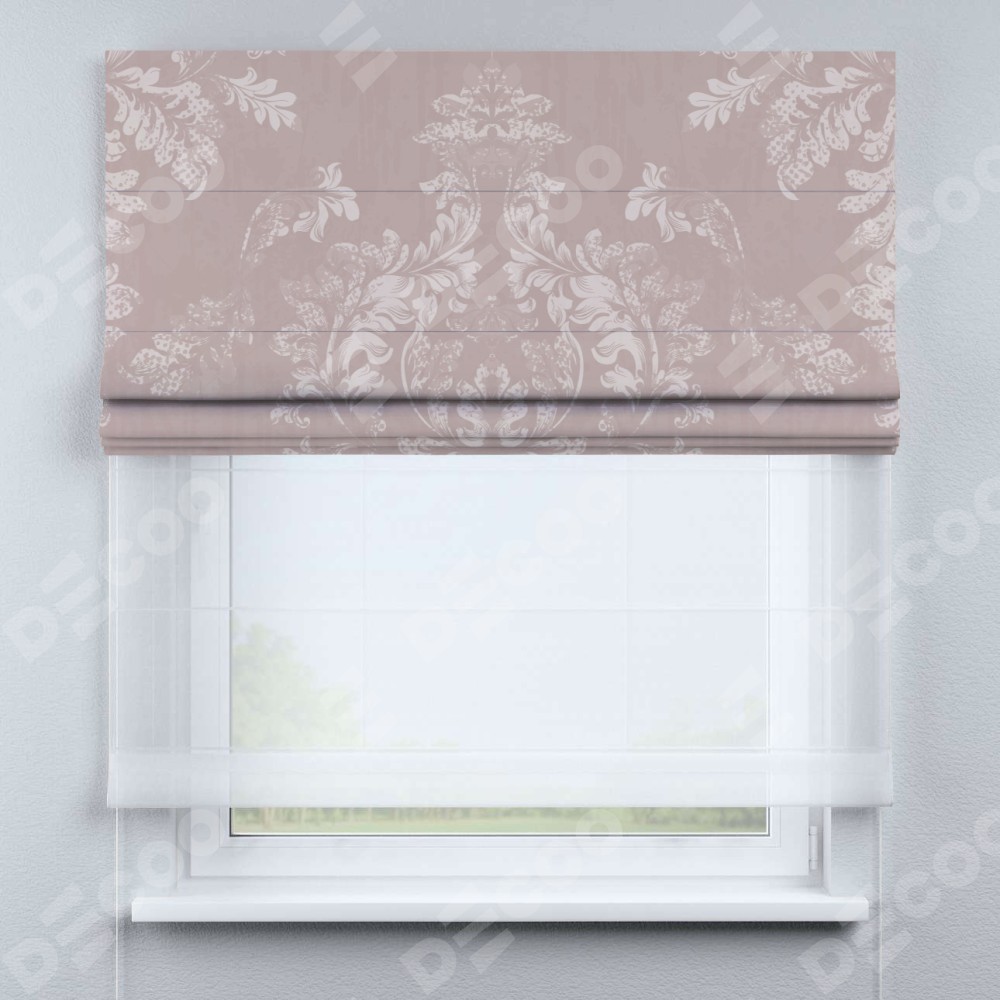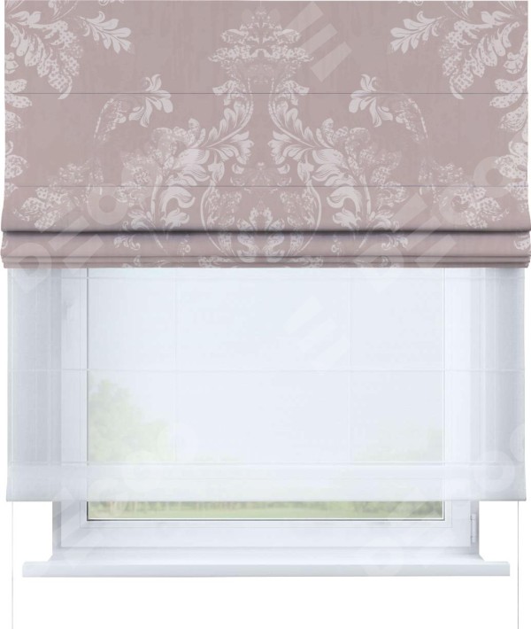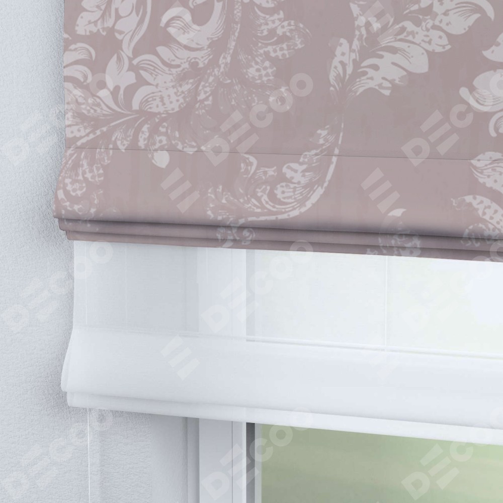 Римская штора день-ночь производителя «Cortin», используется для проёма, пошита из двух полотен, с лицевой блэкаут с нанесением сублимационной печати «Винтажный узор бежевый», вторая ткань тюль (по стандарту комплектуется тюль белого цвета артикул V-01). Имеет универсальный механизм и подходит для монтажа: на потолок, на стену и в нишу.