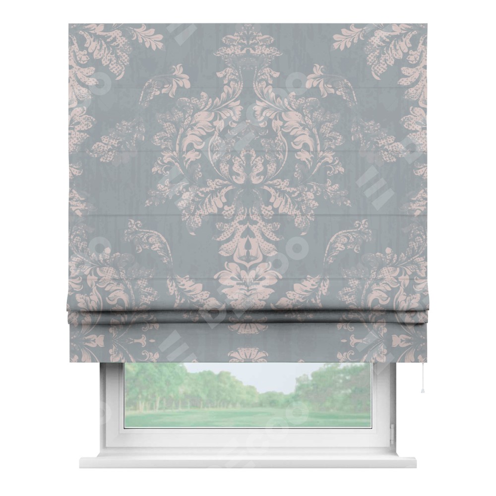 Римская штора производителя «Cortin», используется для проёма, пошита из ткани блэкаут с нанесением сублимационной печати «Винтажный узор серый». Имеет универсальный механизм и подходит для монтажа: на потолок, на стену и в нишу.