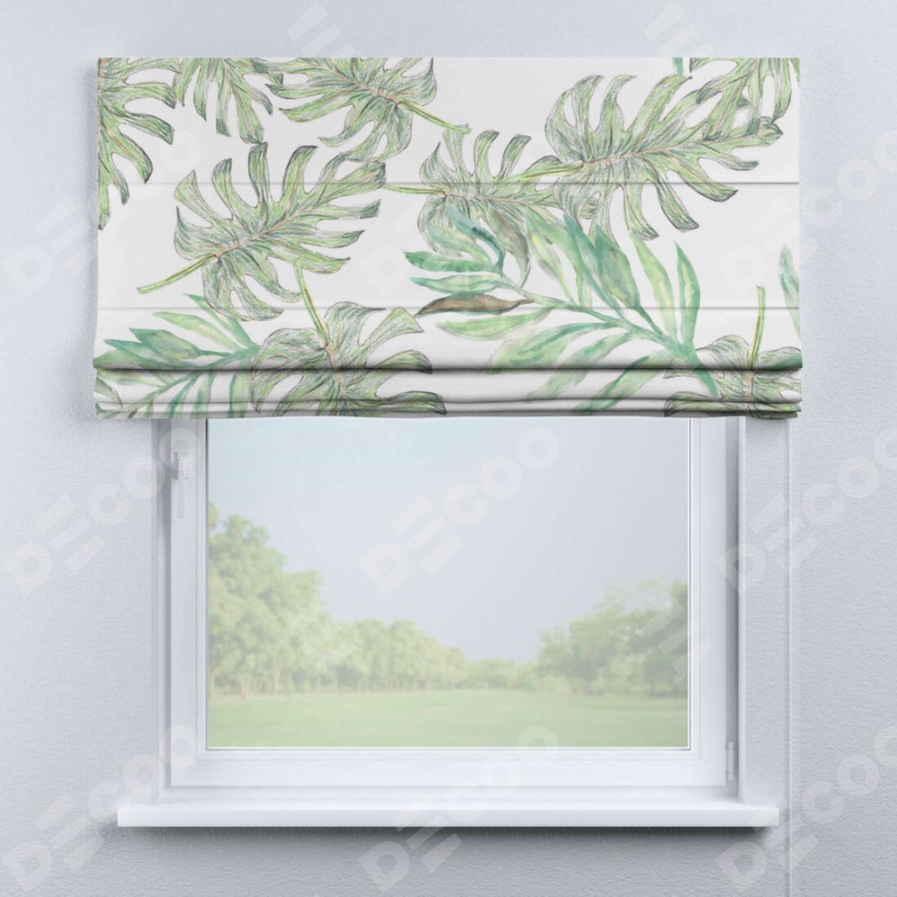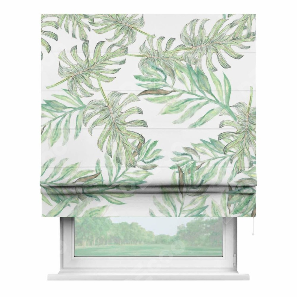 Римская штора «Кортин» для проема «Листья монстеры»