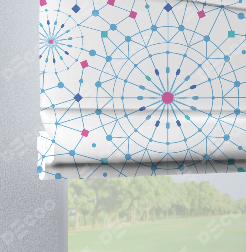 Римская штора производителя «Cortin», используется для проёма, пошита из ткани блэкаут с нанесением сублимационной печати «Круги и линии». Данная модель пошита на петлях, комплектуется на выбор круглым карнизом и подходит для монтажа на стену. Римская штора на петлях имеет простую систему регулировки высоты, отличительным преимуществом данной модели является простой способ монтажа. Достаточно повесить ее на трубу и штора готова!