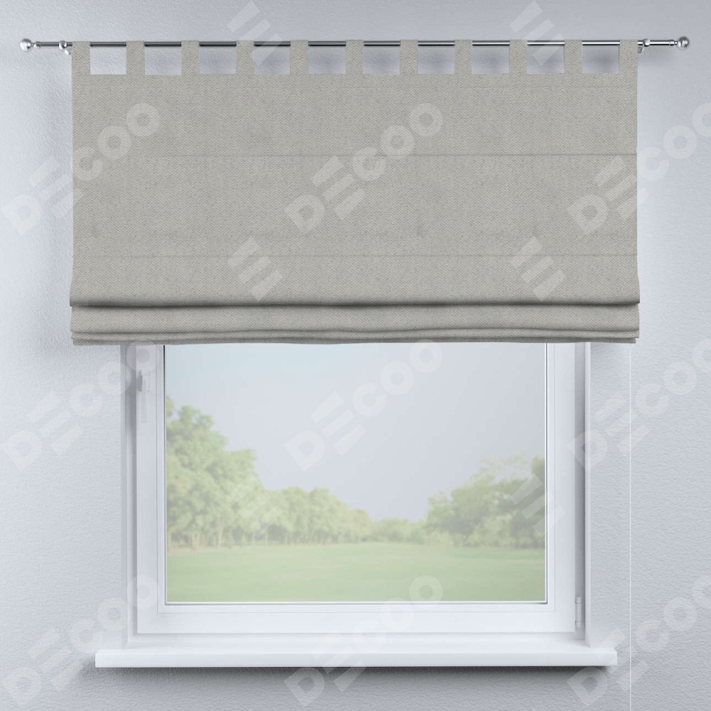 Римская штора производителя «Cortin», используется для проёма, пошита из ткани блэкаут с блеском тёмно-серый, артикул ткани 34634. Изнаночная сторона материала черного цвета, что обеспечивает необходимую светонепроницаемость. Данная модель пошита на петлях, комплектуется на выбор круглым карнизом и подходит для монтажа на стену. Римская штора на петлях имеет простую систему регулировки высоты, отличительным преимуществом данной модели является простой способ монтажа. Достаточно повесить ее на трубу и штора готова!