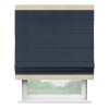 Римская штора производителя «Cortin», используется для проёма, пошита из ткани софт однотонный тёмно-синий, артикул 33111. Отделка шторы кантом «Горизонт», ткань для канта используется из софта разной расцветки на выбор. Имеет универсальный механизм и подходит для монтажа: на потолок, на стену и в нишу.
