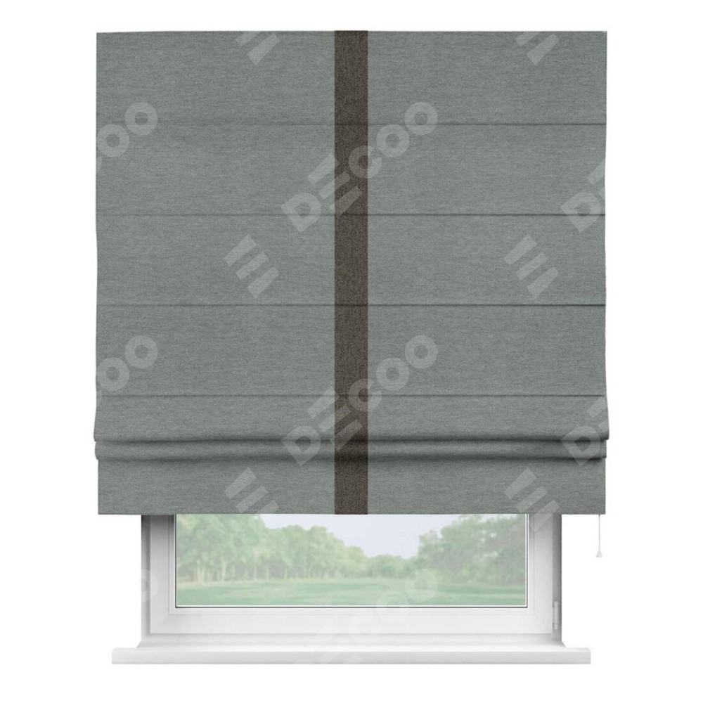 Римская штора «Кортин» с кантом Хайвэй, для проема, ткань твид блэкаут, серый