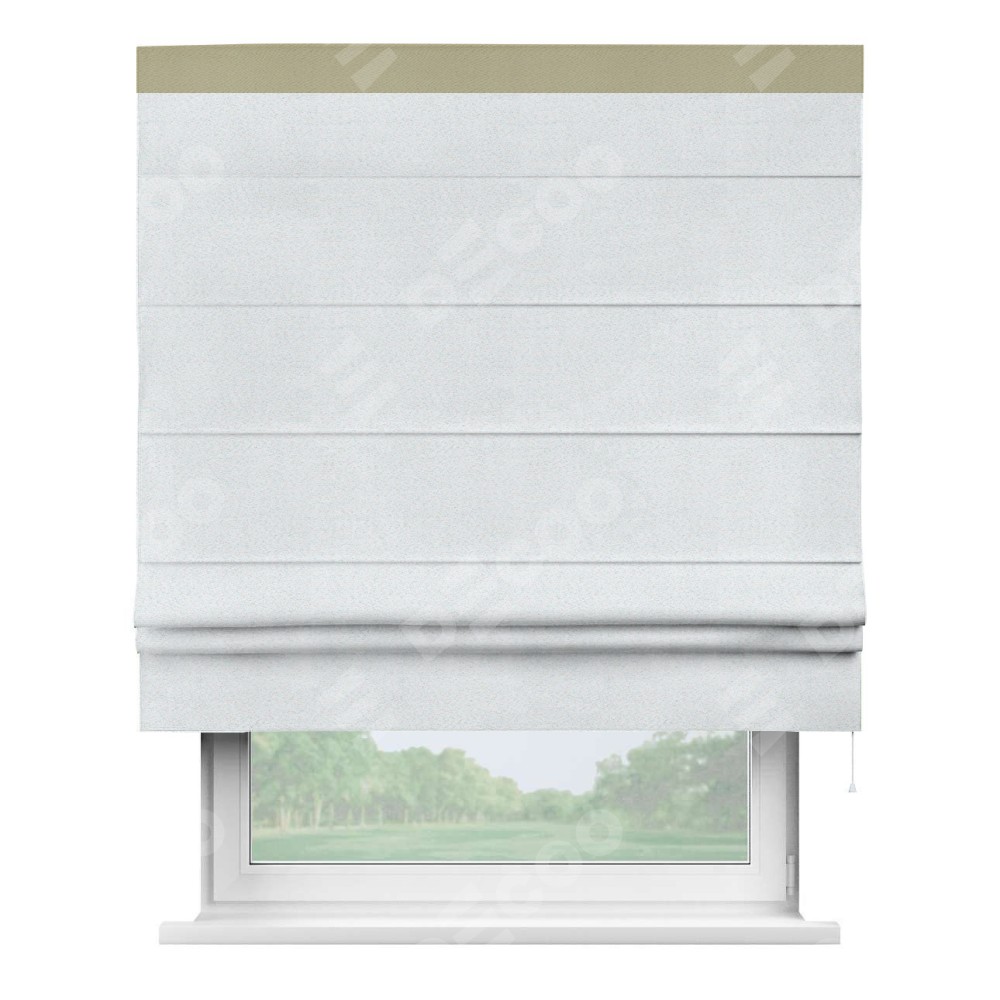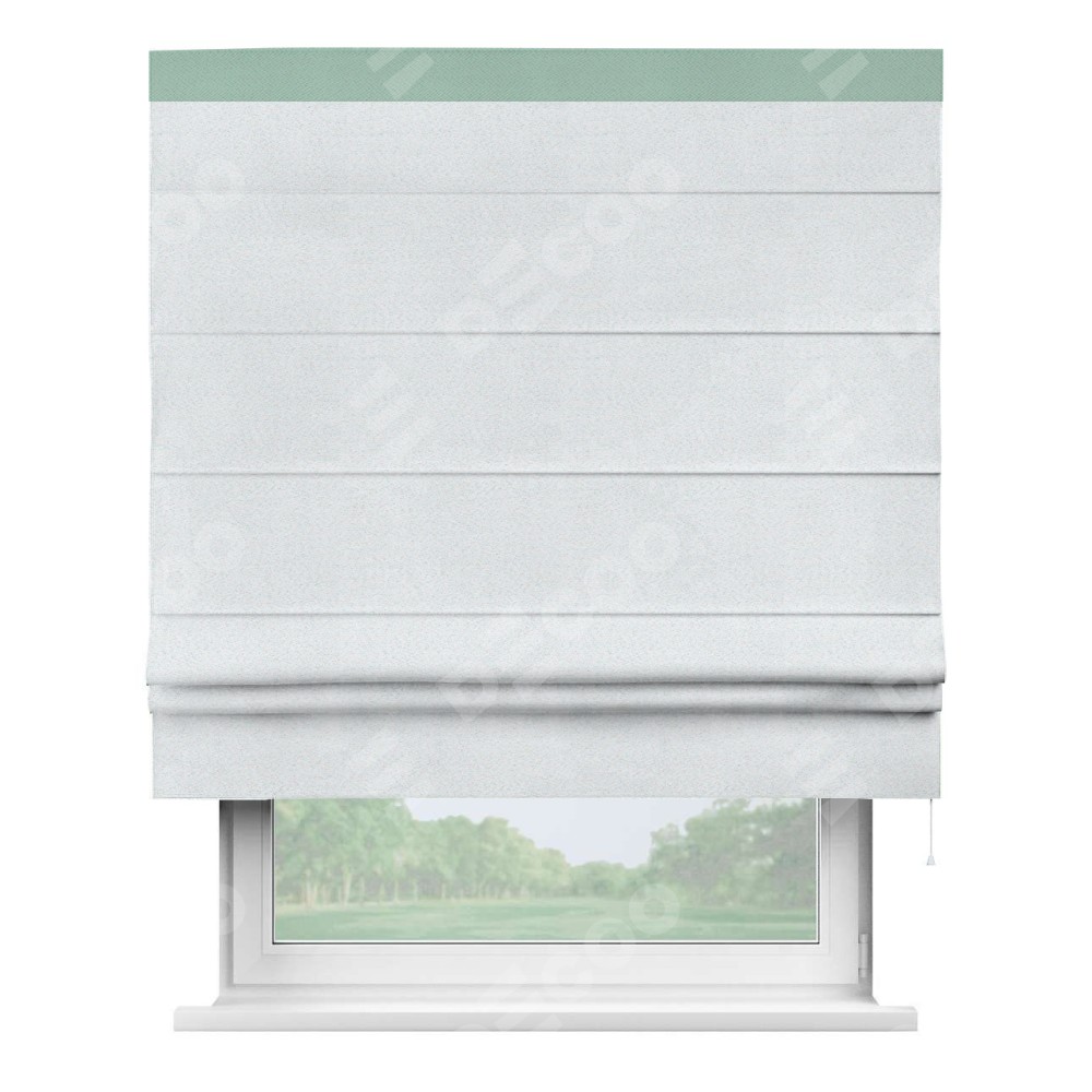 Римская штора производителя «Cortin», используется для проёма, пошита из ткани блэкаут однотонный дымчато-белый, артикул ткани 101. Отделка шторы кантом «Кинг», ткань для канта используется из блэкаута однотонного разной расцветки на выбор. Имеет универсальный механизм и подходит для монтажа: на потолок, на стену и в нишу.