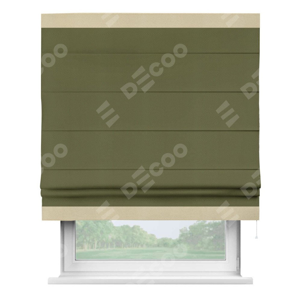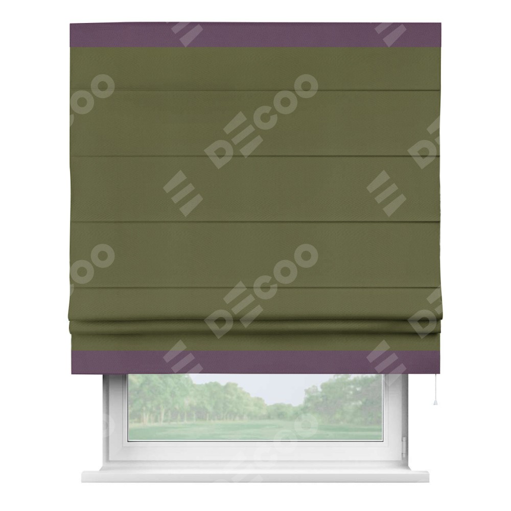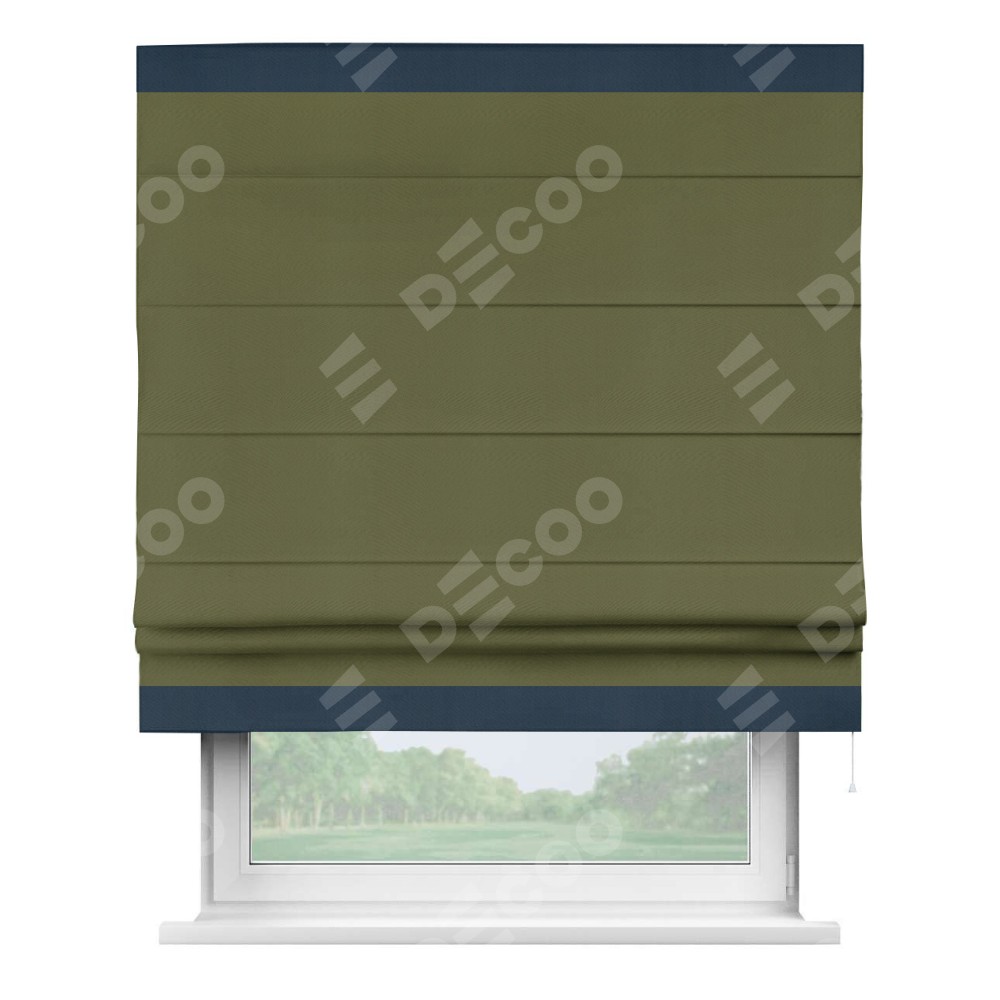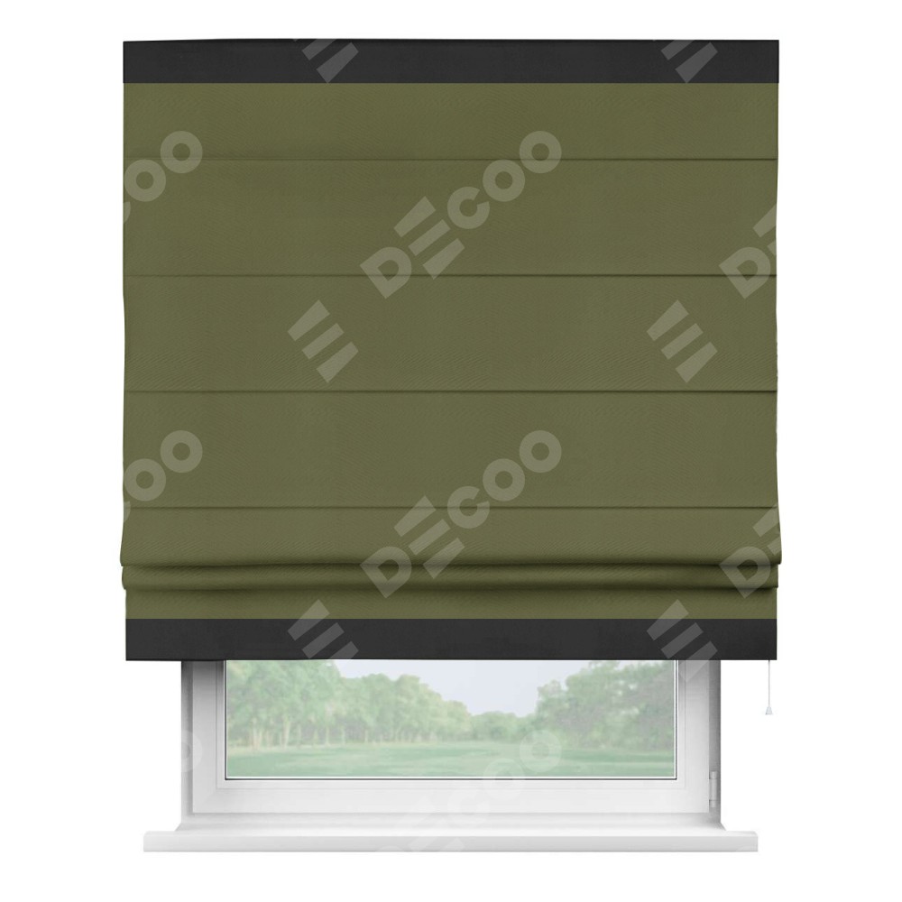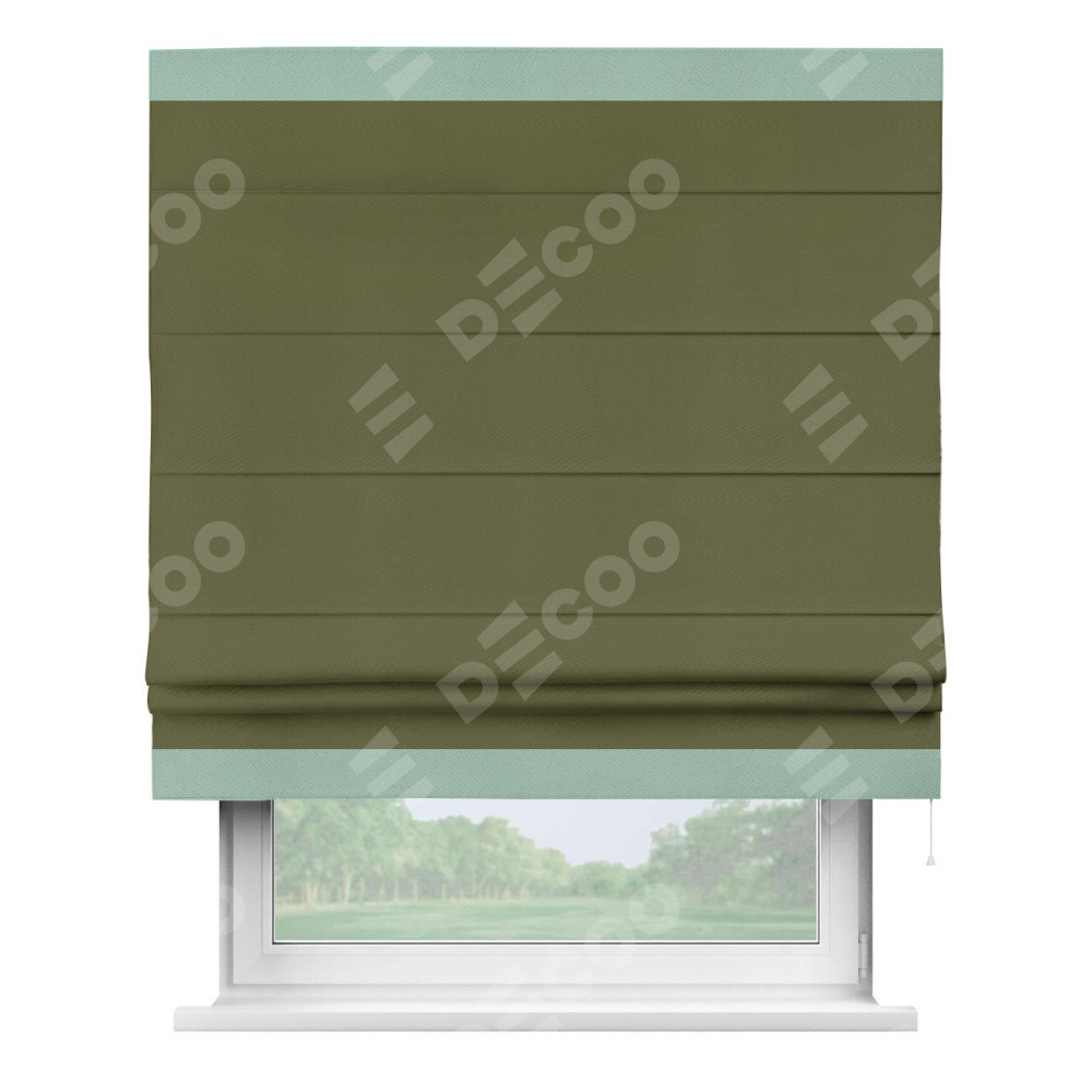 Римская штора «Кортин» с кантом Горизонт, для проема, ткань блэкаут однотонный зелёный