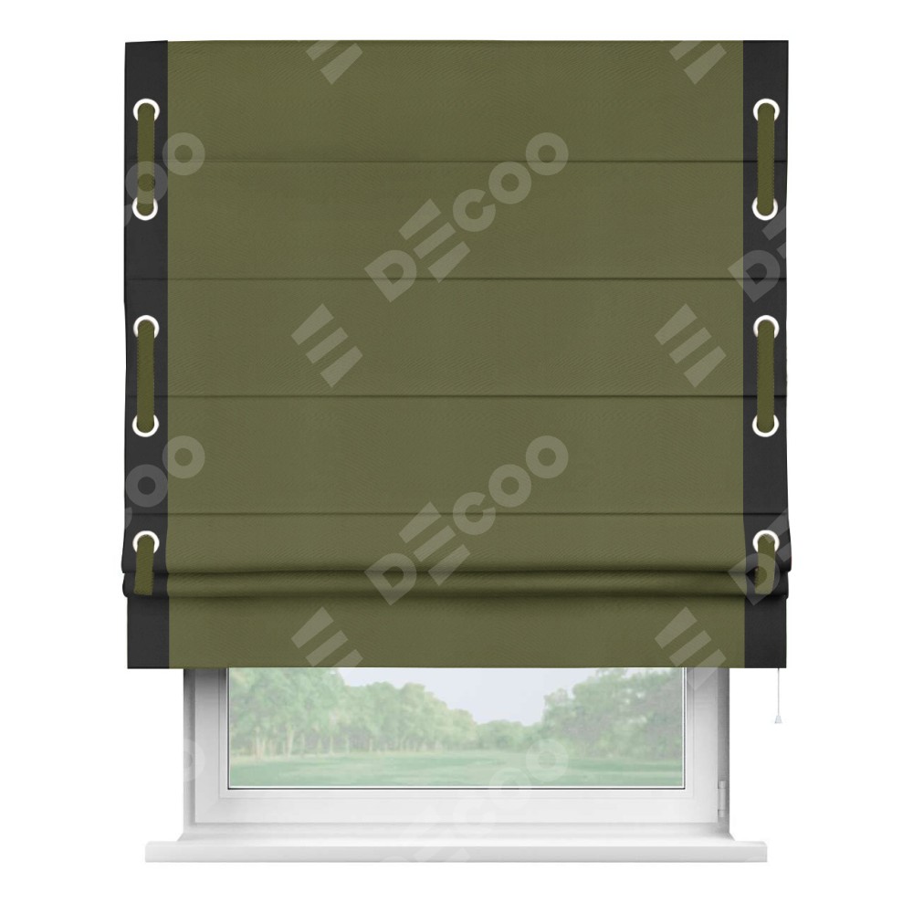 Римская штора «Кортин» с кантом Стрим Дуо (люверсы с пояском), для проема, ткань блэкаут однотонный зелёный