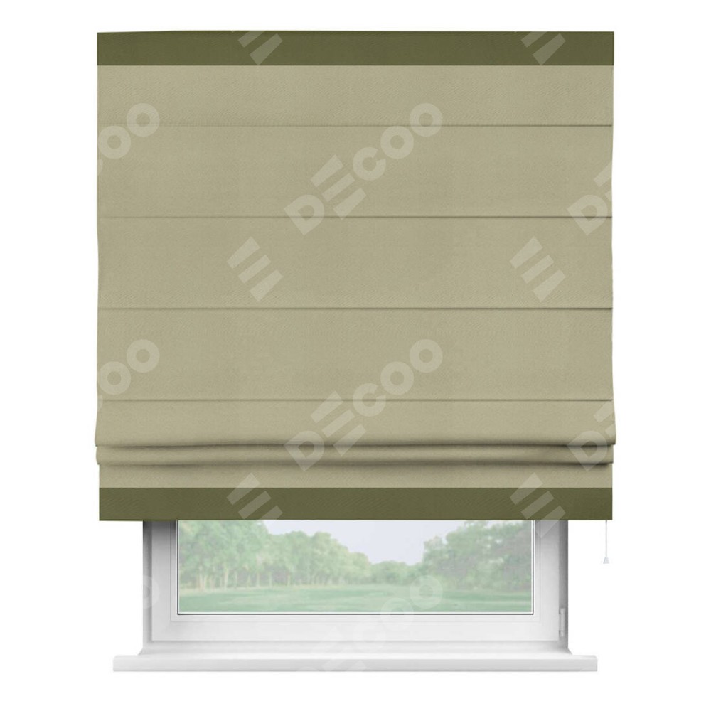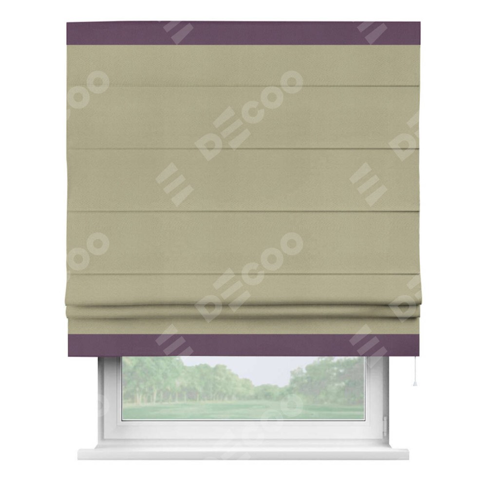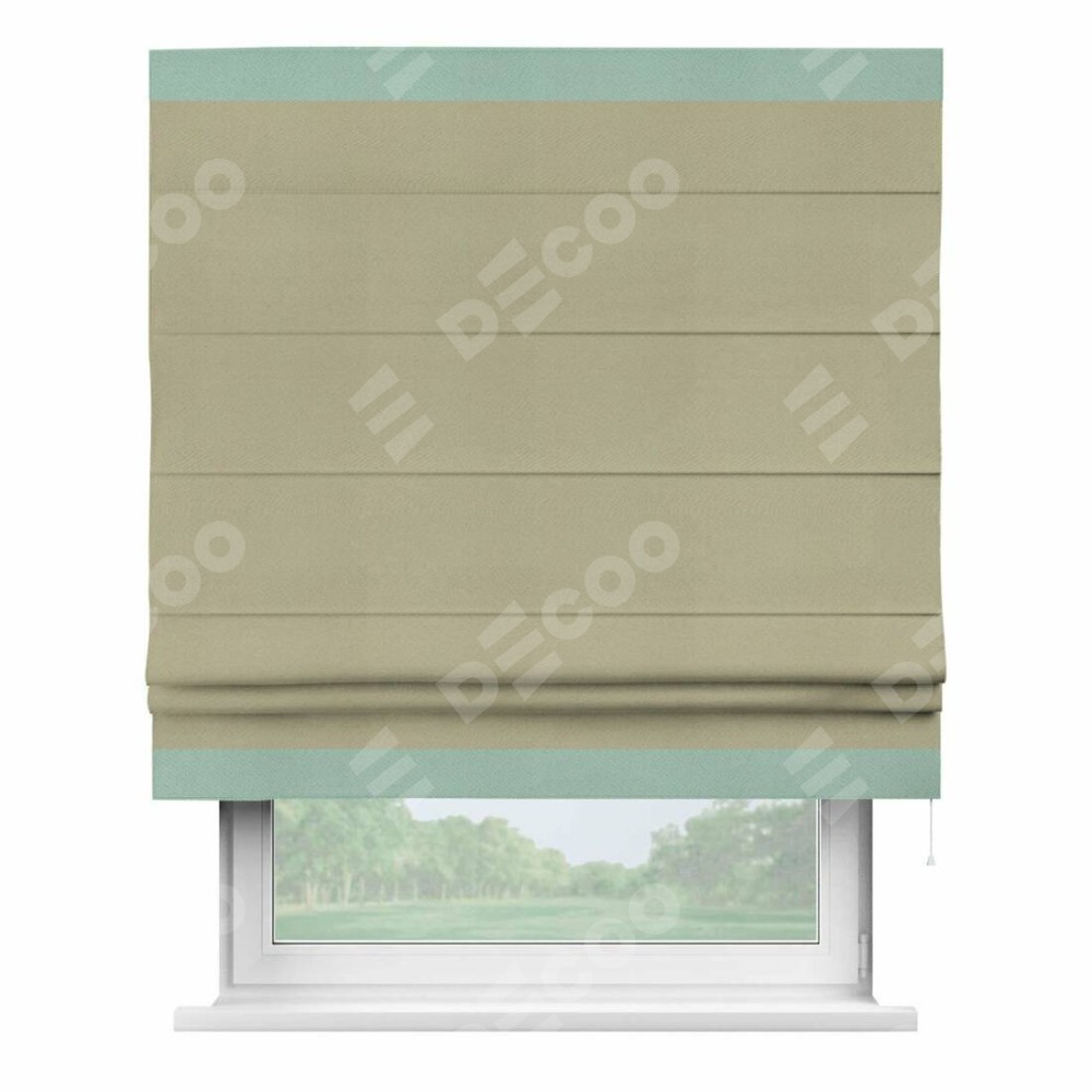 Римская штора производителя «Cortin», используется для проёма, пошита из ткани блэкаут однотонный милано капучино, артикул ткани 06. Отделка шторы кантом «Горизонт», ткань для канта используется из блэкаута однотонного разной расцветки на выбор. Имеет универсальный механизм и подходит для монтажа: на потолок, на стену и в нишу.