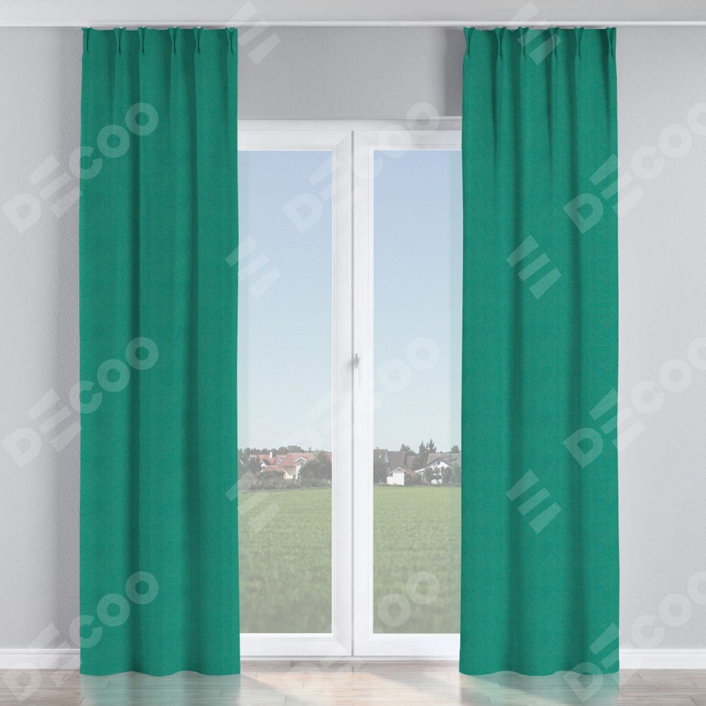 Комплект прямых штор, от производителя «Cortin», пошиты из ткани блэкаут с блеском изумрудный, артикул ткани 34628. С изнаночной стороны в верхней части штор пристрачивается шторная лента с декоративными складками «Кустик». Обратная сторона основного материала черного цвета, что обеспечивает необходимую светонепроницаемость. Для создания элегантных складок прямые шторы шьются по стандарту с коэффициентом 1:2 (на 100 см. ширины проёма 200 см. ширины ткани).