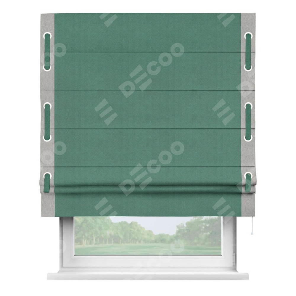 Римская штора «Кортин» с кантом Стрим Дуо (люверсы с пояском), для проема, ткань блэкаут с блеском изумрудный