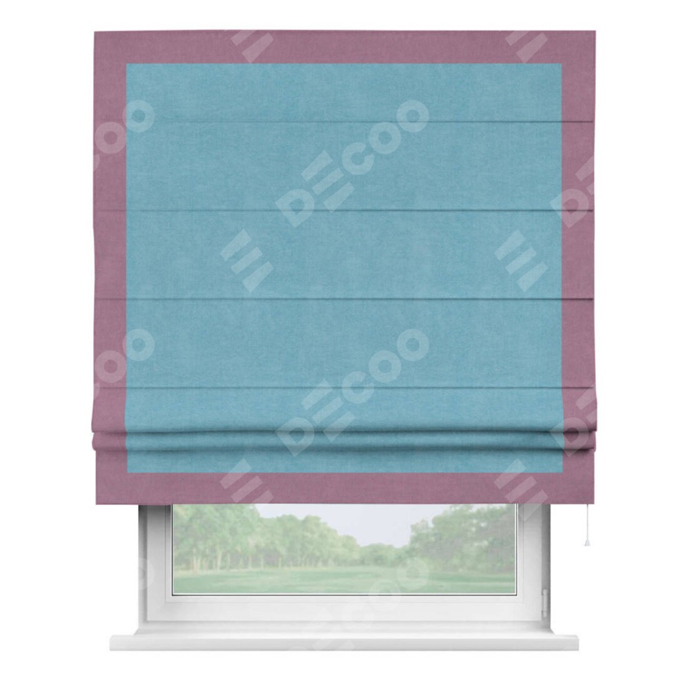 Римская штора производителя «Cortin», используется для проёма, пошита из ткани вельвет ментоловый, артикул ткани 10443. Отделка шторы кантом «Чесс», ткань для канта используется из вельвета разной расцветки на выбор. Имеет универсальный механизм и подходит для монтажа: на потолок, на стену и в нишу.