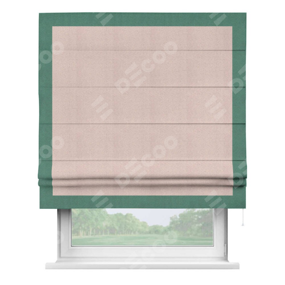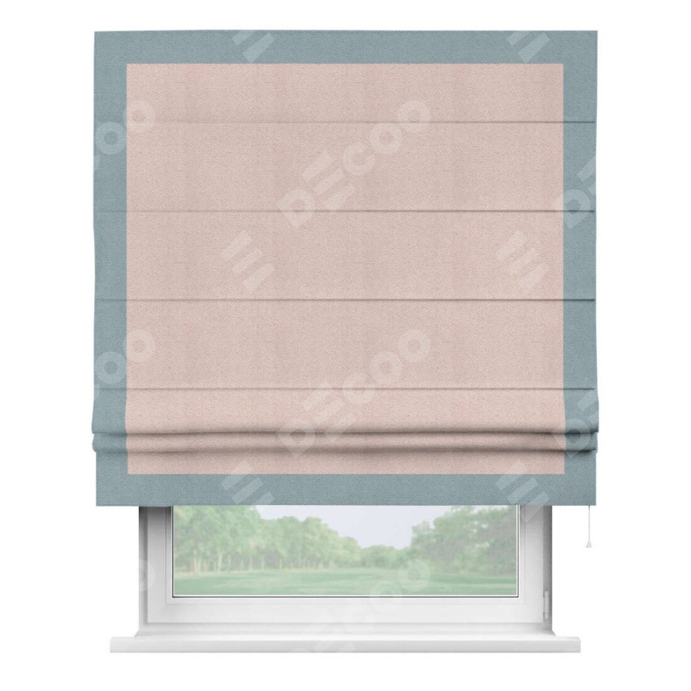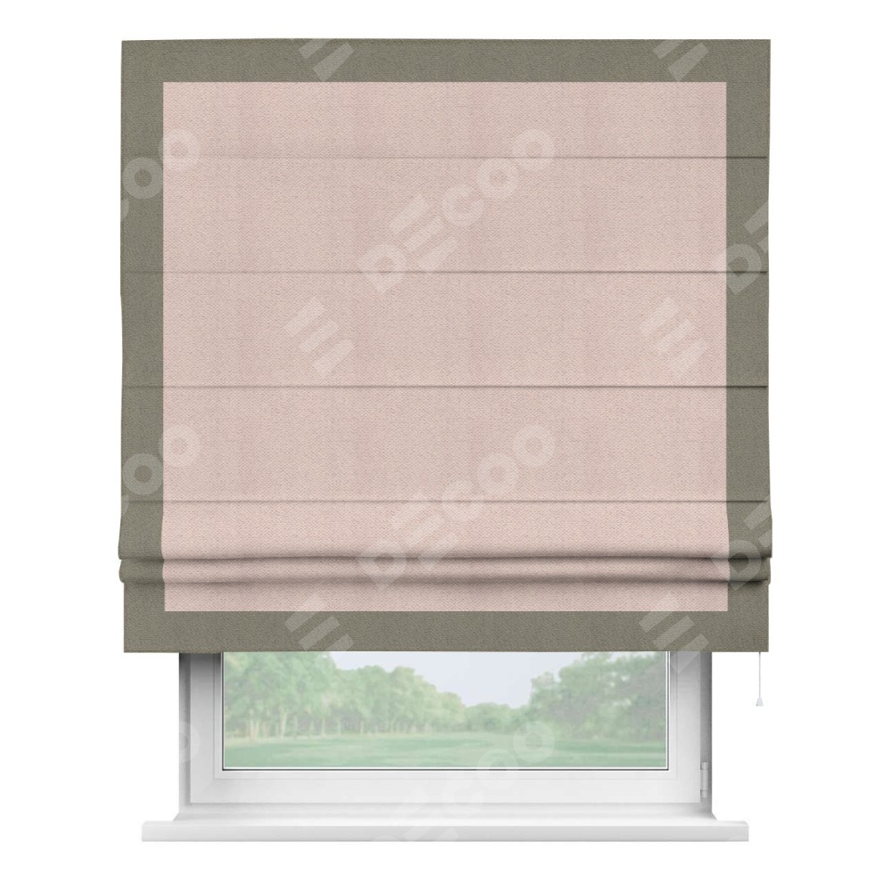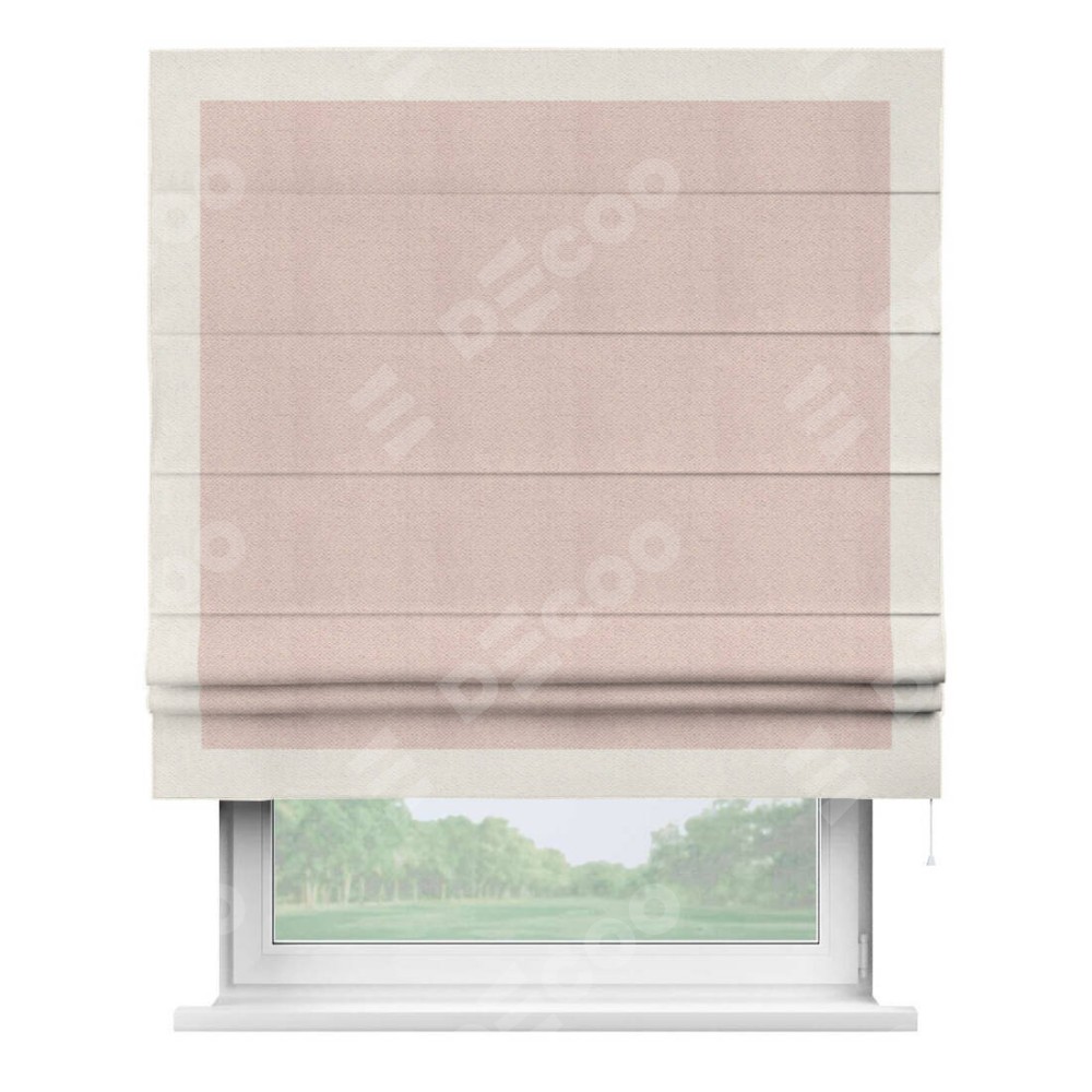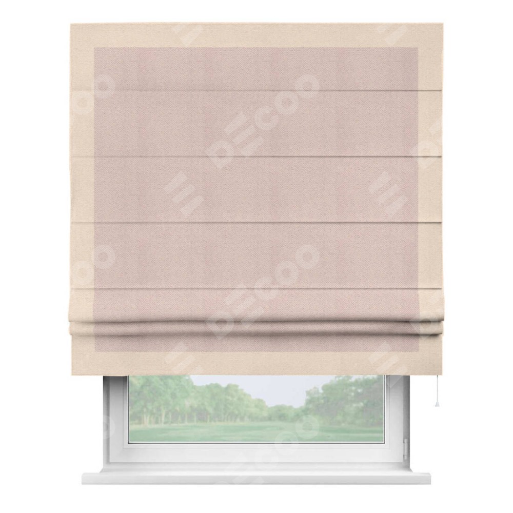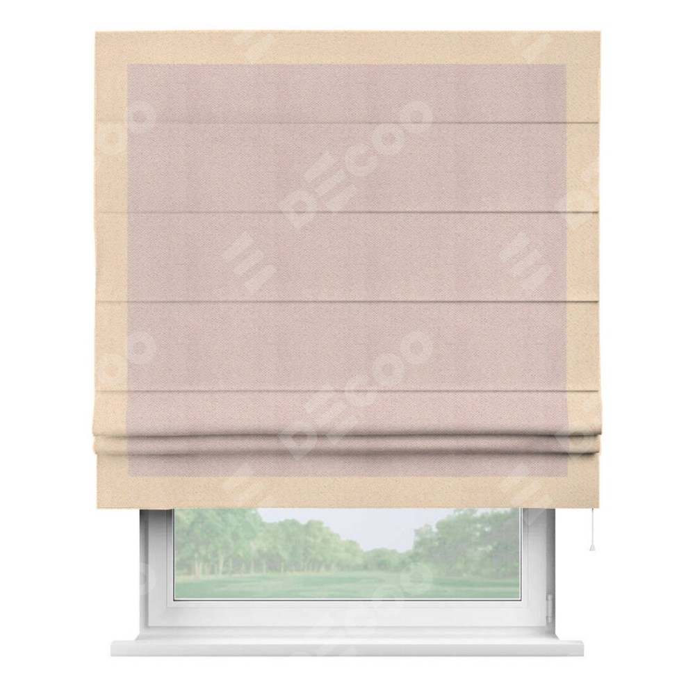 Римская штора производителя «Cortin», используется для проёма, пошита из ткани блэкаут с блеском сиреневый, артикул 34649. Отделка шторы кантом «Чесс», ткань для канта используется из блэкаута с блеском разной расцветки на выбор. Изнаночная сторона материала черного цвета, что обеспечивает необходимую светонепроницаемость. Имеет универсальный механизм и подходит для монтажа: на потолок, на стену и в нишу.