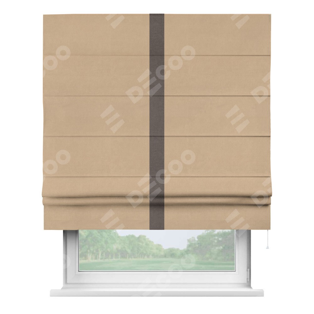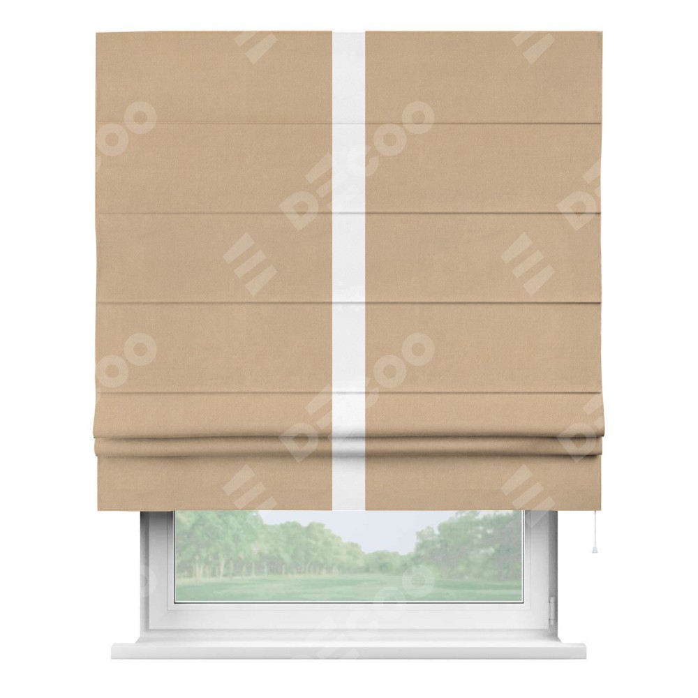 Римская штора «Кортин» с кантом Хайвэй, для проема, ткань вельвет песочный