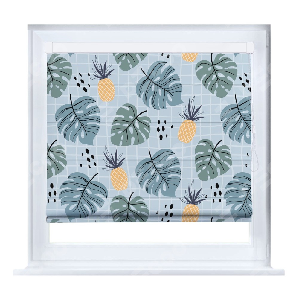 Римская штора «Кортин» на створку «Ананасы и листья монстеры»