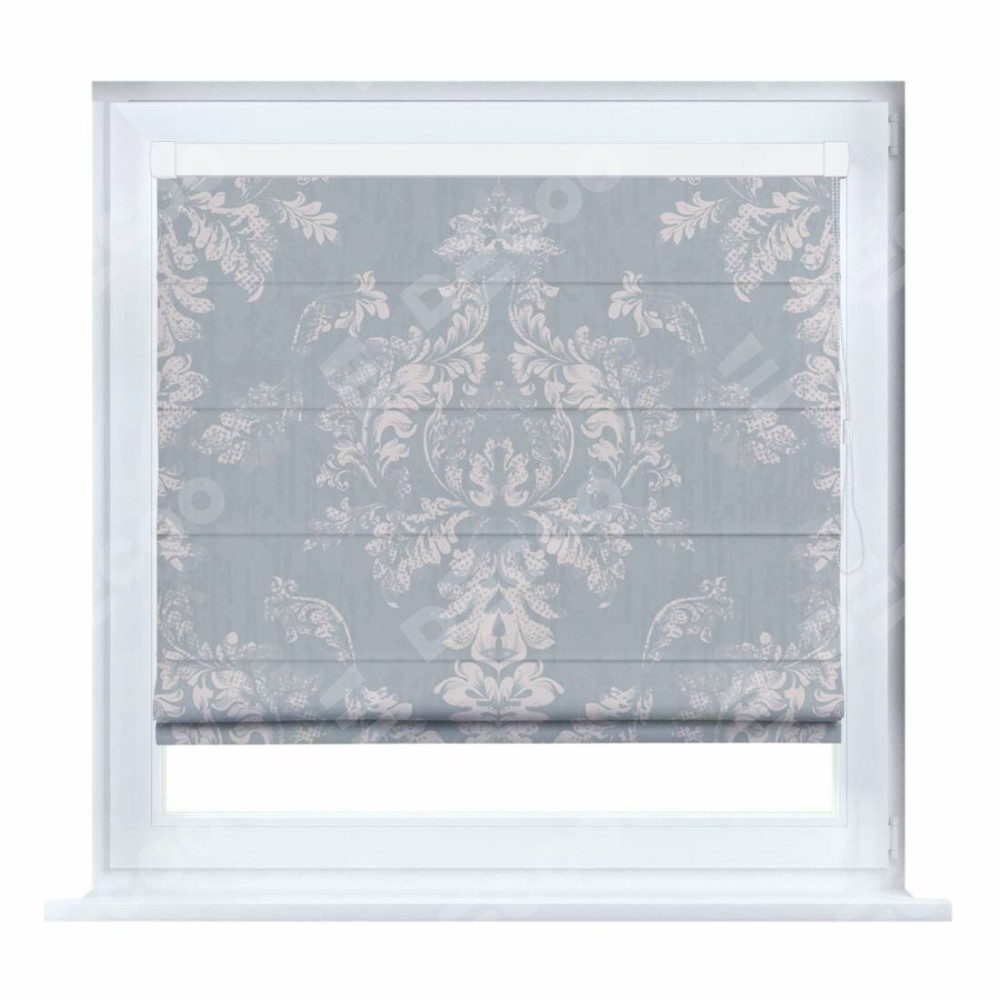 Римская штора производителя «Cortin», устанавливается на створку окна, пошита из ткани блэкаут с нанесением сублимационной печати «Винтажный узор серый». Штора шьётся по индивидуальным размерам, для данного типа римской шторы возможная ширина от 35 до 150 см., высота до 250 см.