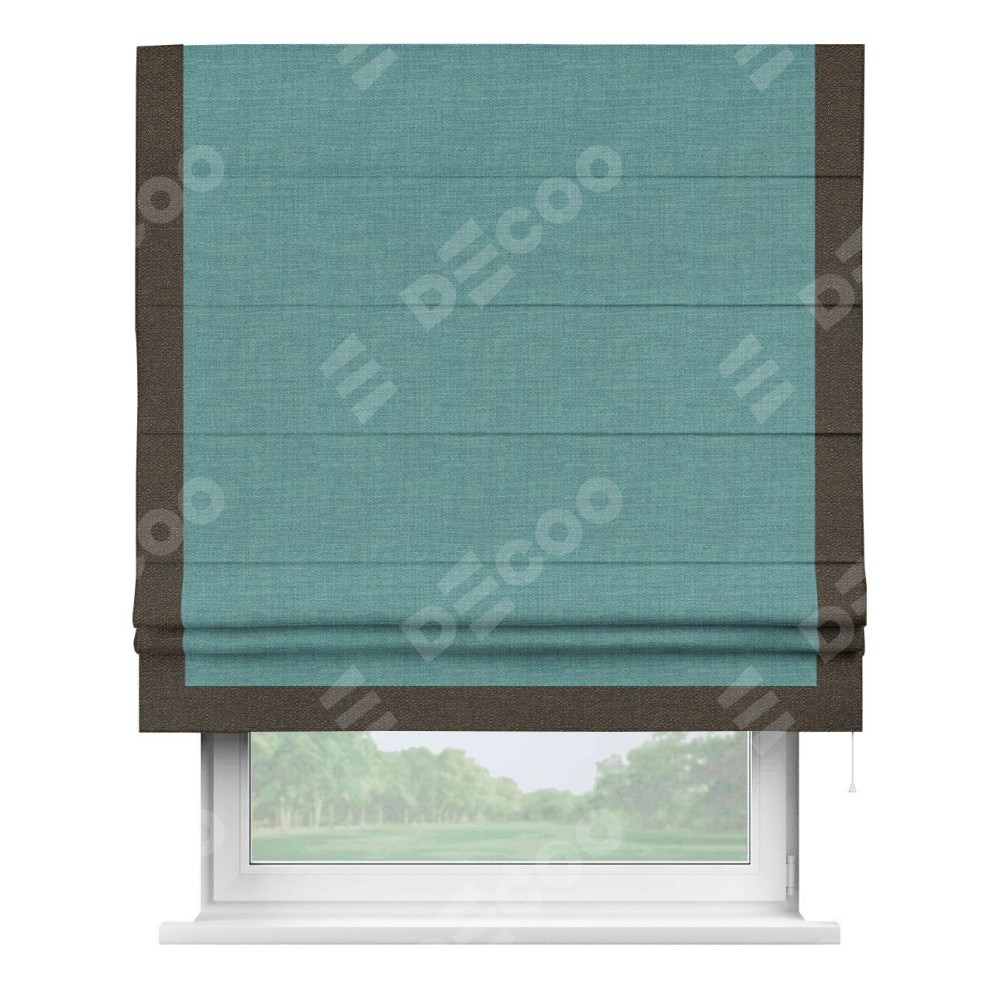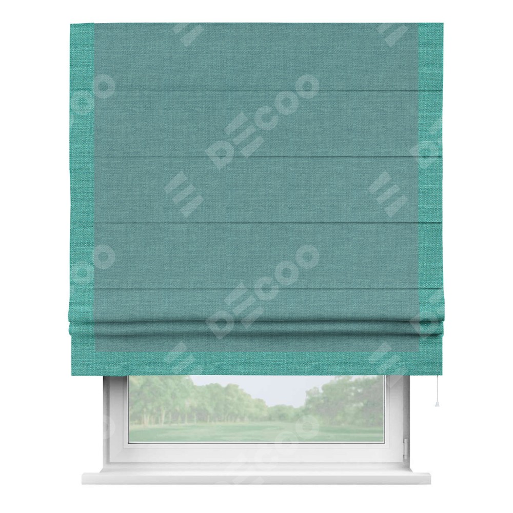 Римская штора «Кортин» с кантом Виктория, для проема, ткань лён бирюза