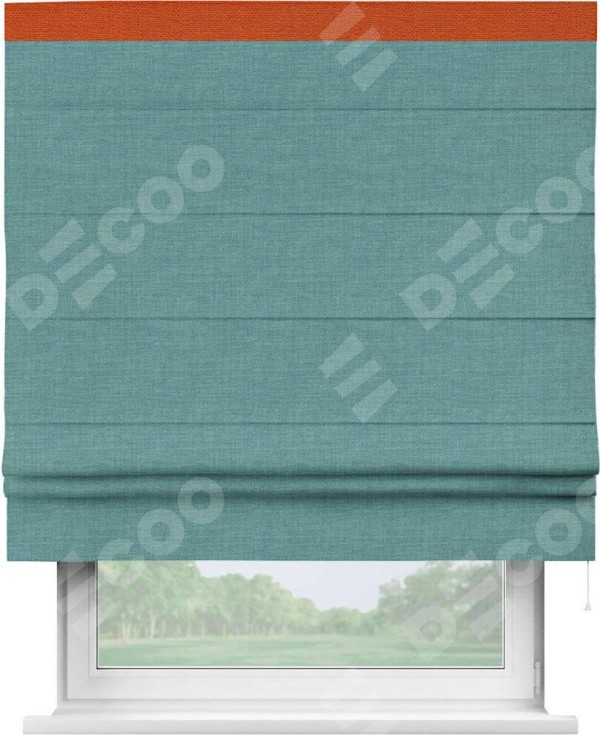 Римская штора «Кортин» с кантом Кинг, для проема, ткань лён бирюза