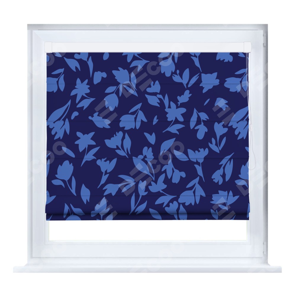 Римская штора производителя «Cortin», устанавливается на створку окна, пошита из ткани блэкаут с нанесением сублимационной печати «Синие цветы». Штора шьётся по индивидуальным размерам, для данного типа римской шторы возможная ширина от 35 до 150 см., высота до 250 см.