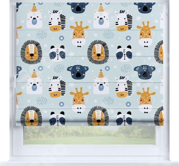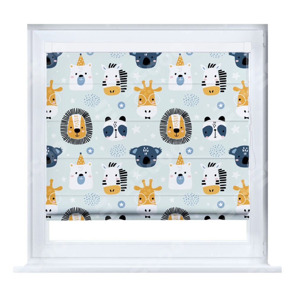 Римская штора производителя «Cortin», устанавливается на створку окна, пошита из ткани блэкаут с нанесением сублимационной печати «Чудесный зоопарк». Штора шьётся по индивидуальным размерам, для данного типа римской шторы возможная ширина от 35 до 150 см., высота до 250 см.