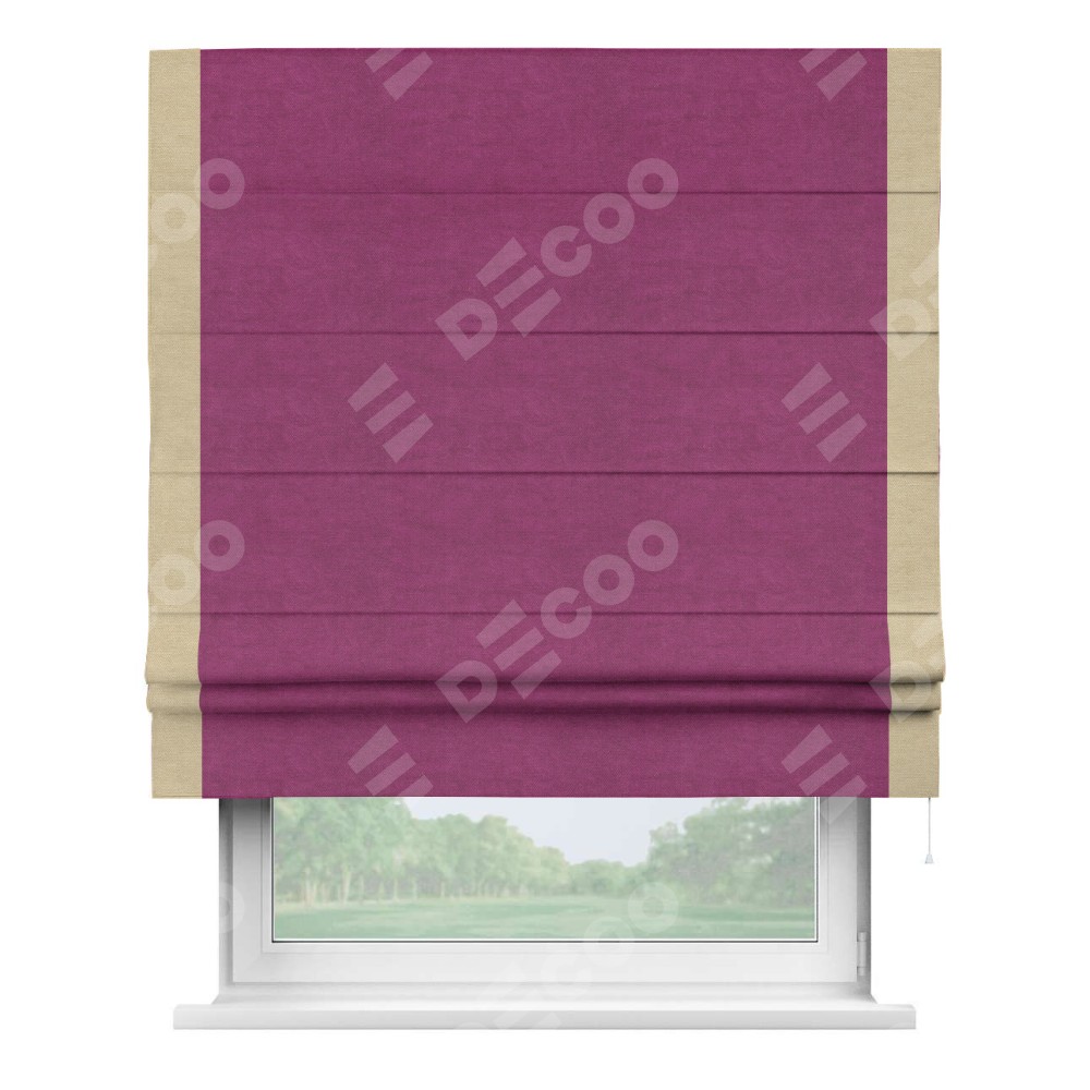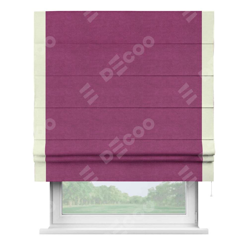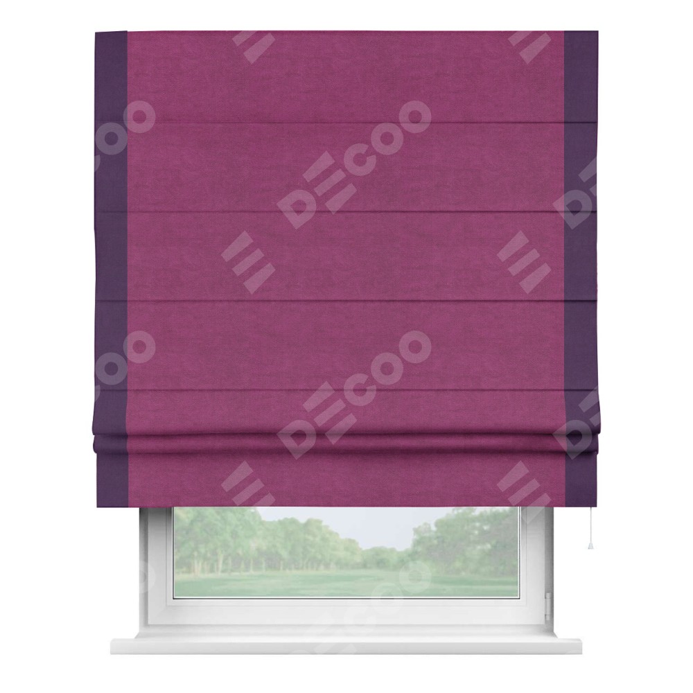 Римская штора «Кортин» с кантом Стрим Дуо, для проема, ткань вельвет фиолетовый