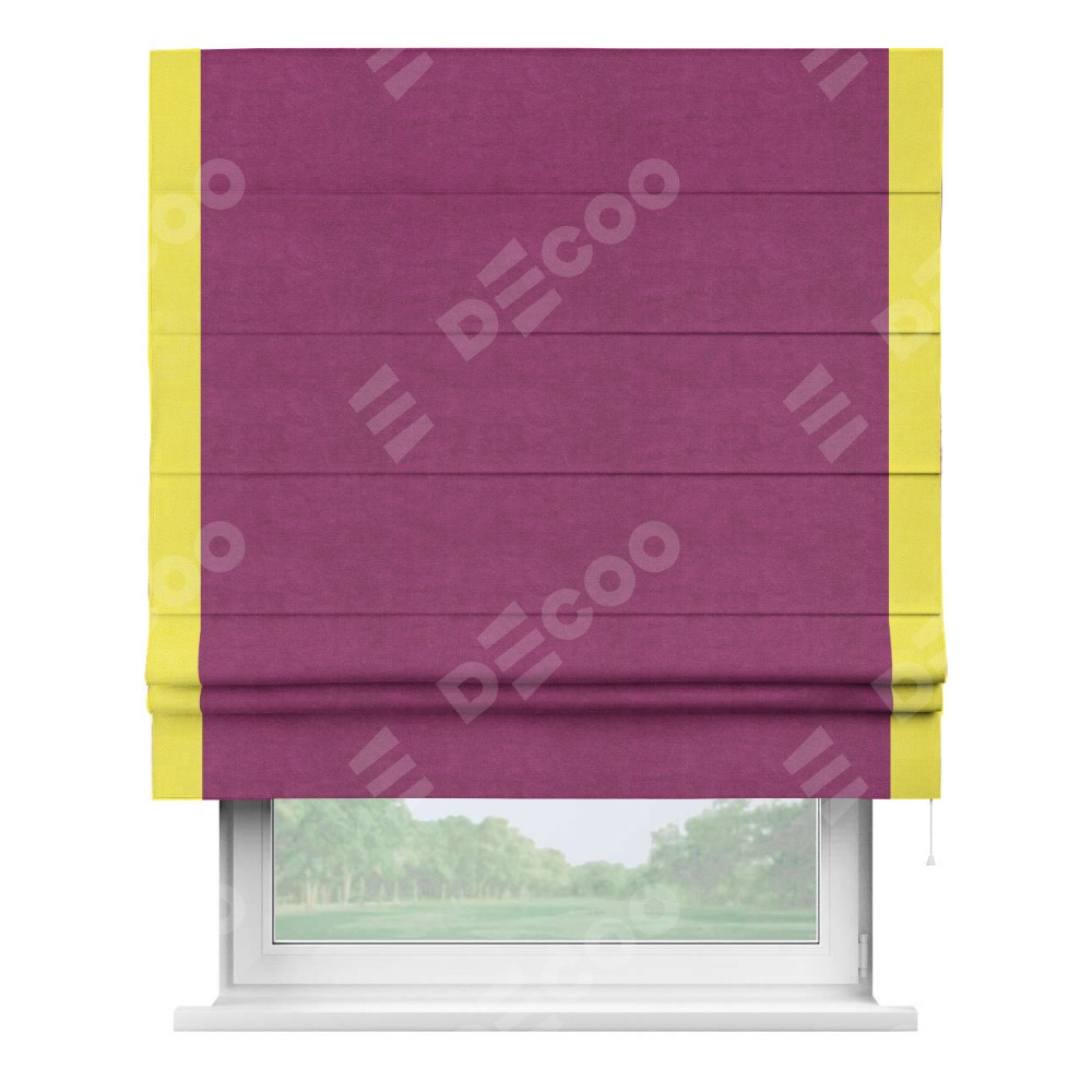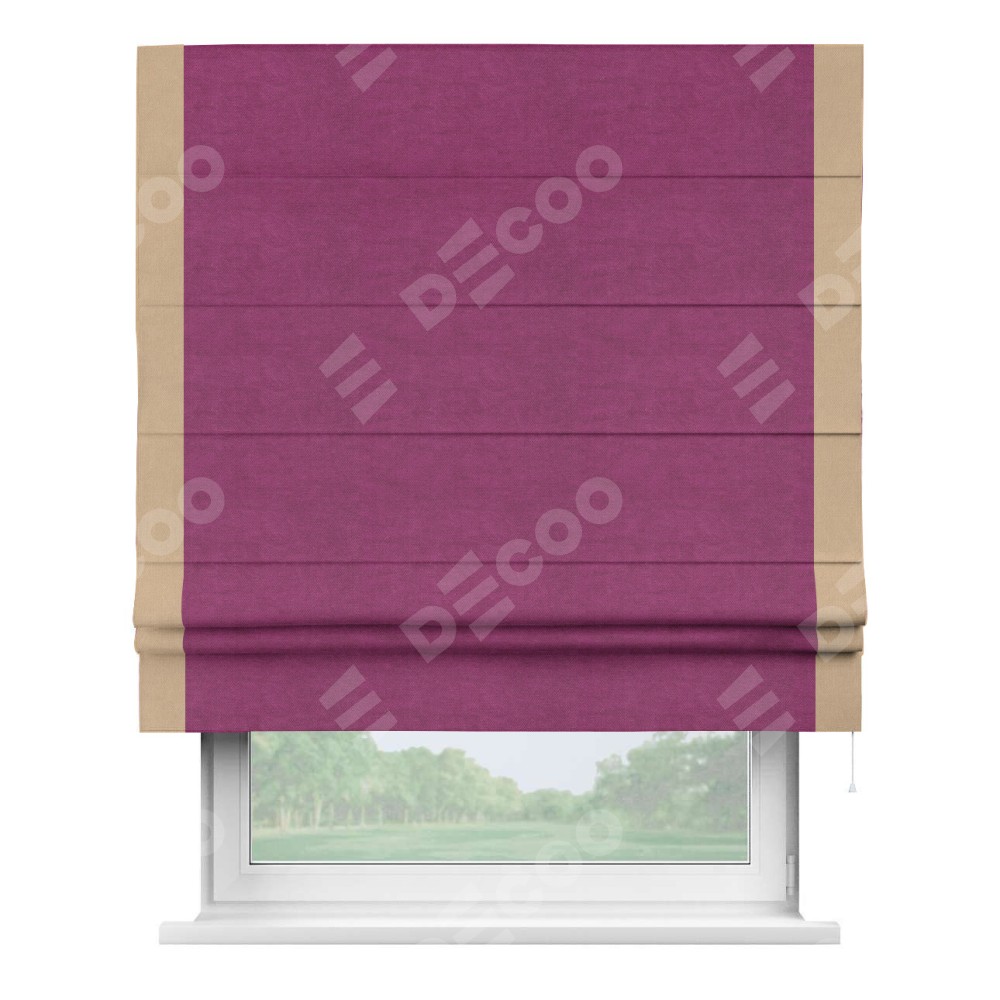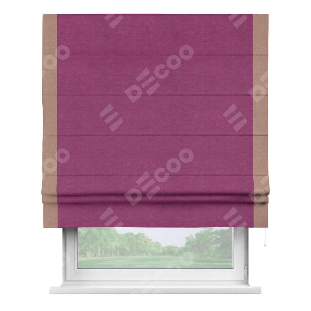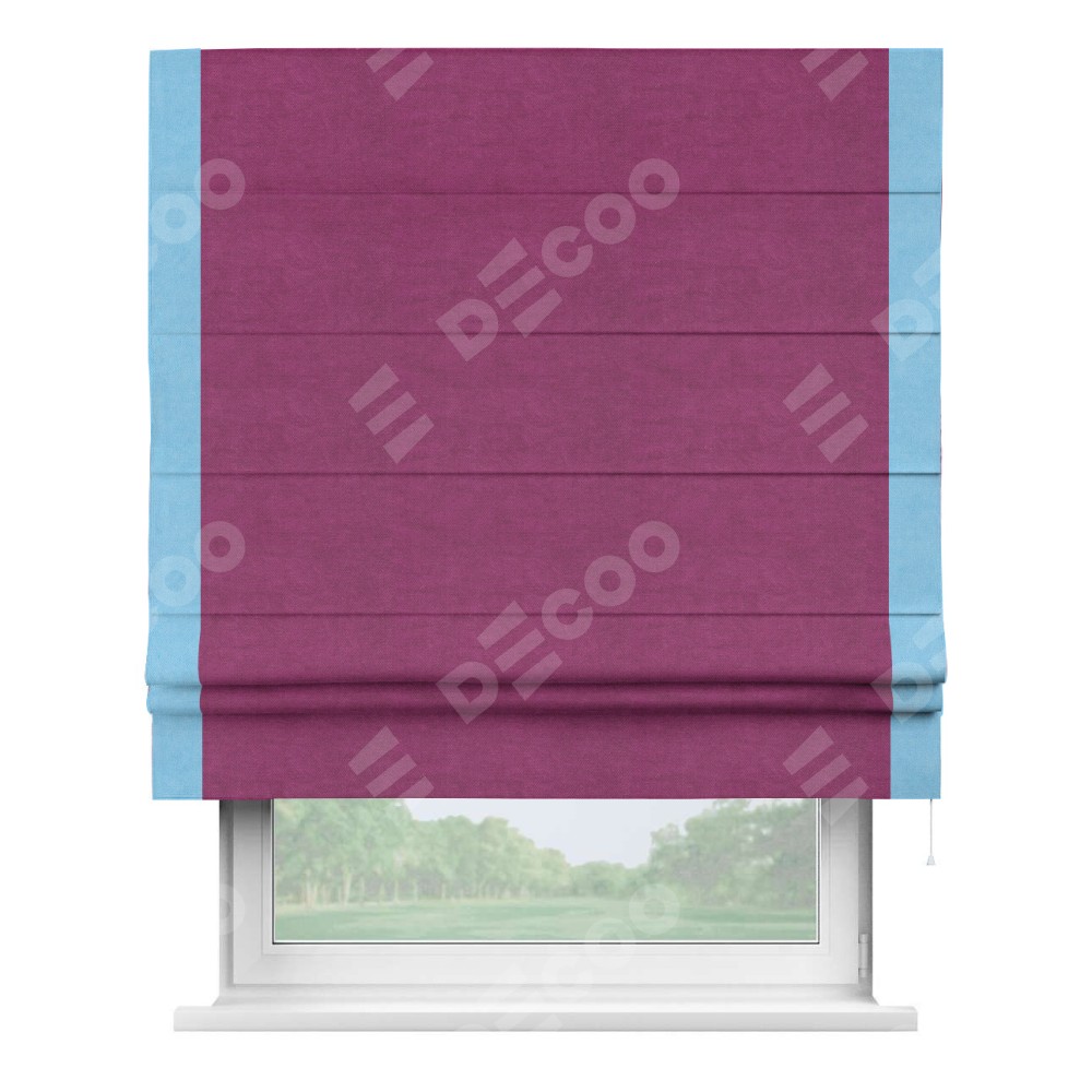 Римская штора «Кортин» с кантом Стрим Дуо, для проема, ткань вельвет фиолетовый