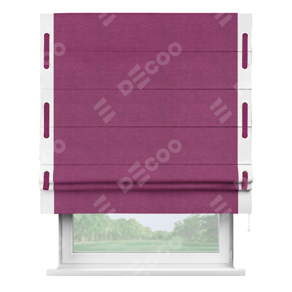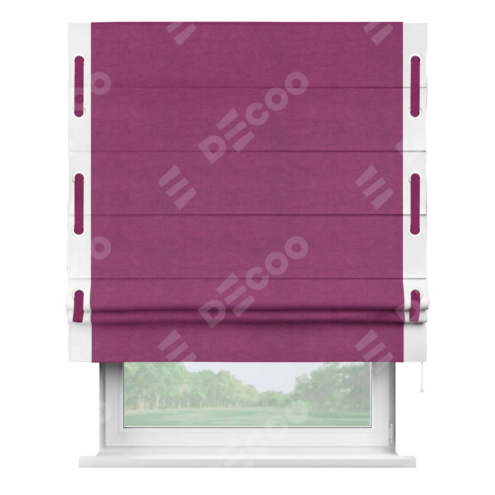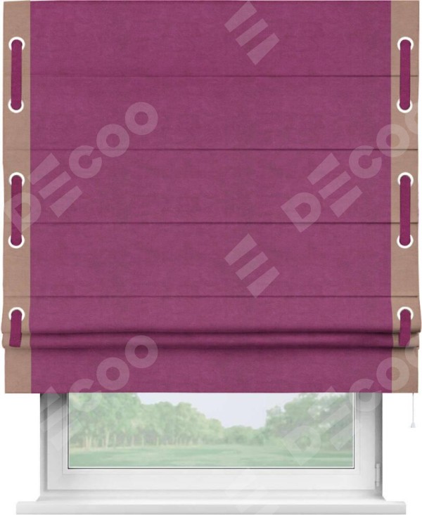 Римская штора «Кортин» с кантом Стрим Дуо (люверсы с пояском), для проема, ткань вельвет фиолетовый