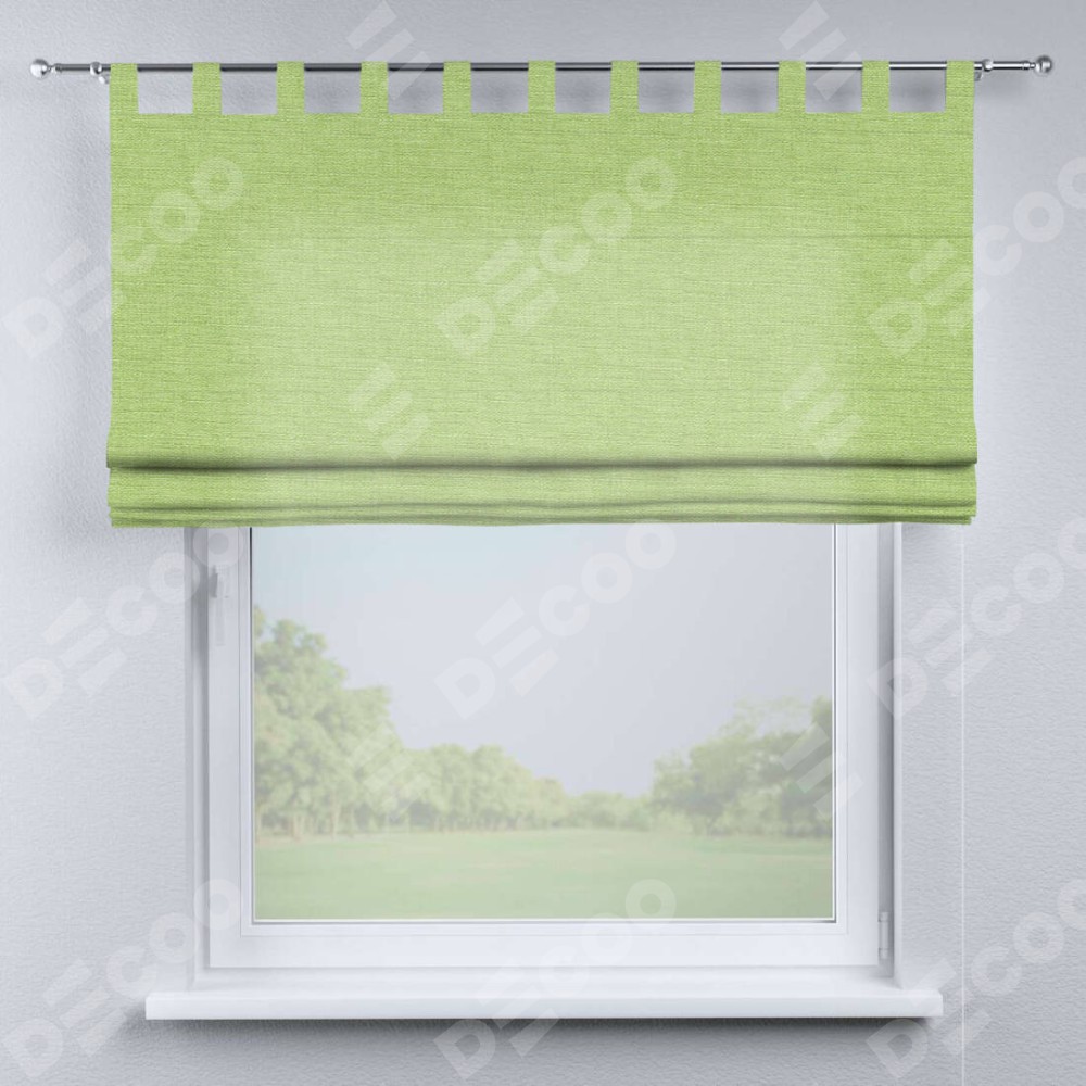 Римская штора производителя «Cortin», используется для проёма, пошита из ткани лён зеленый, артикул ткани 85906. Данная модель пошита на петлях, комплектуется на выбор круглым карнизом и подходит для монтажа на стену. Римская штора на петлях имеет простую систему регулировки высоты, отличительным преимуществом данной модели является простой способ монтажа. Достаточно повесить ее на трубу и штора готова!