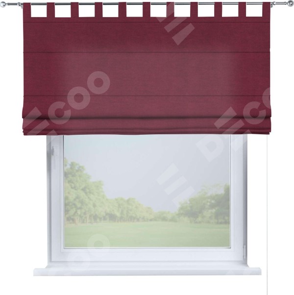 Римская штора производителя «Cortin», используется для проёма, пошита из ткани вельвет бордовый, артикул ткани 85553. Данная модель пошита на петлях, комплектуется на выбор круглым карнизом и подходит для монтажа на стену. Римская штора на петлях имеет простую систему регулировки высоты, отличительным преимуществом данной модели является простой способ монтажа. Достаточно повесить ее на трубу и штора готова!