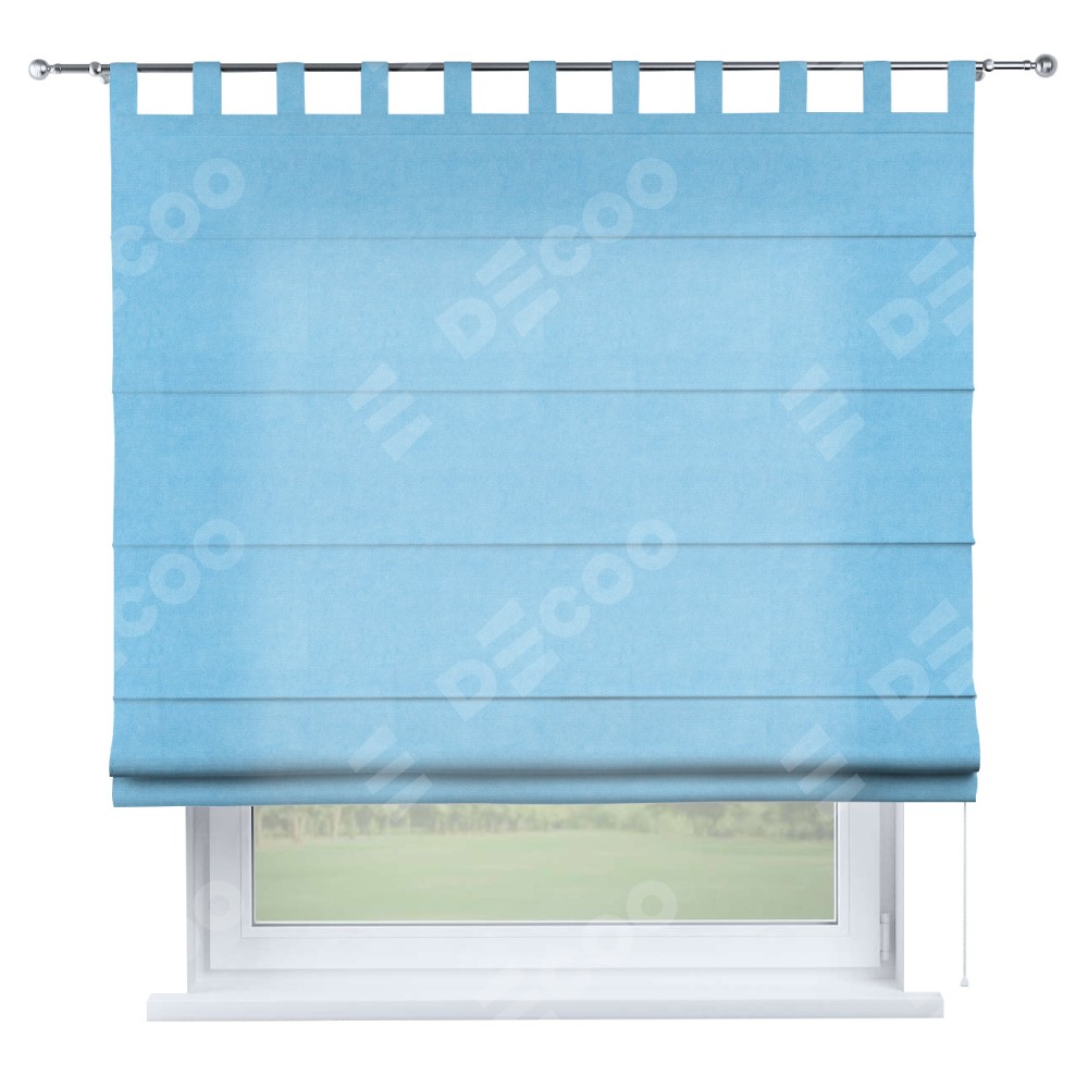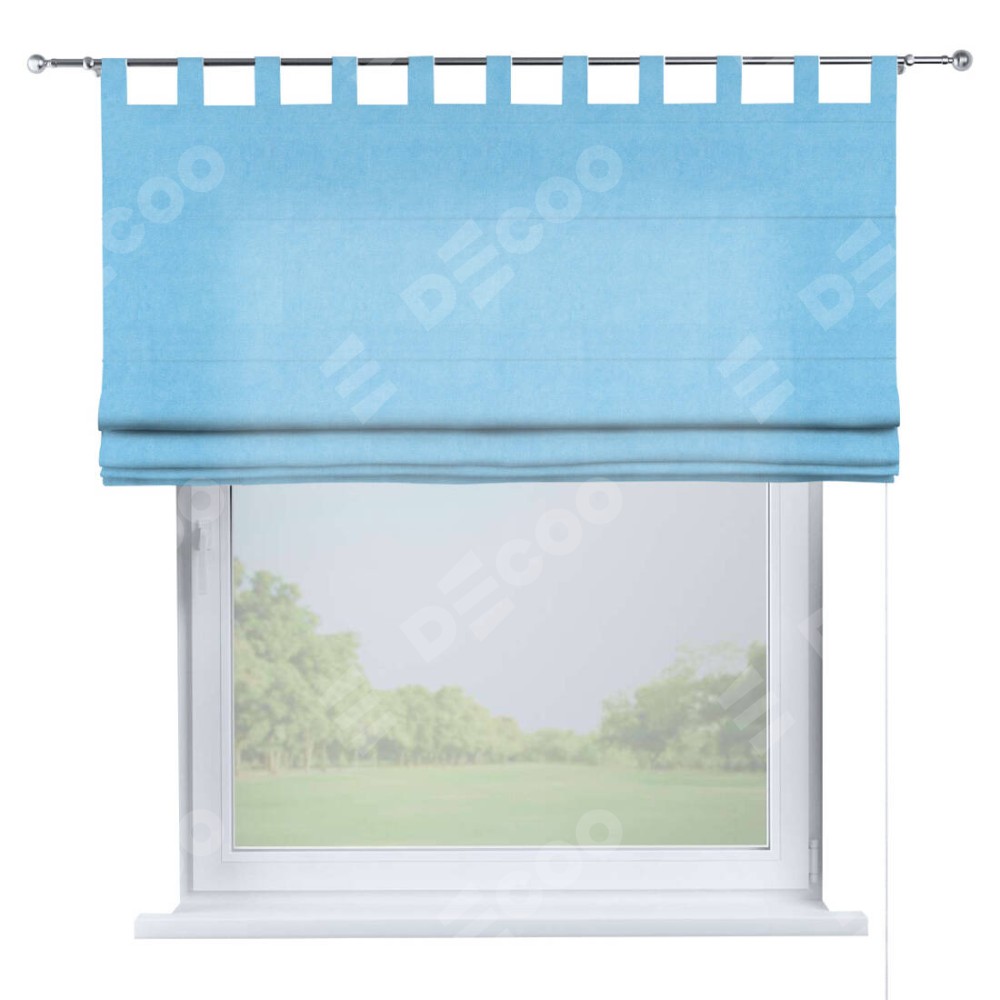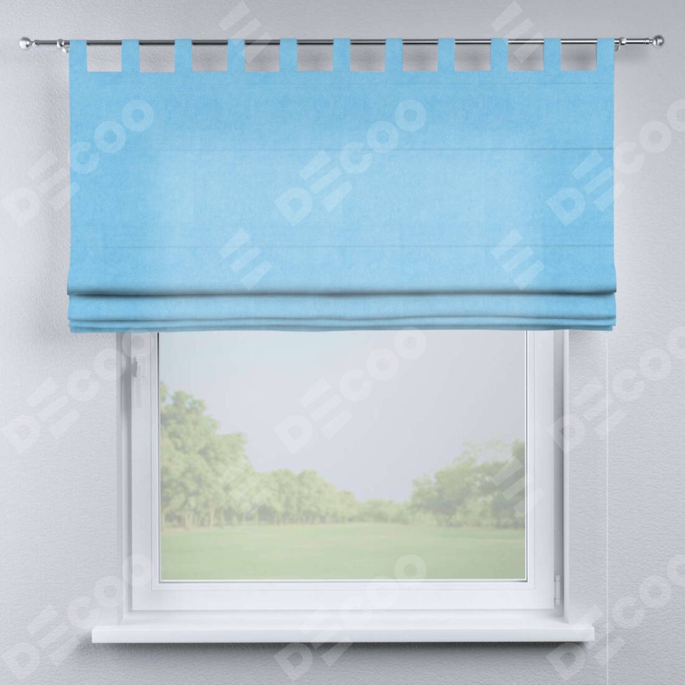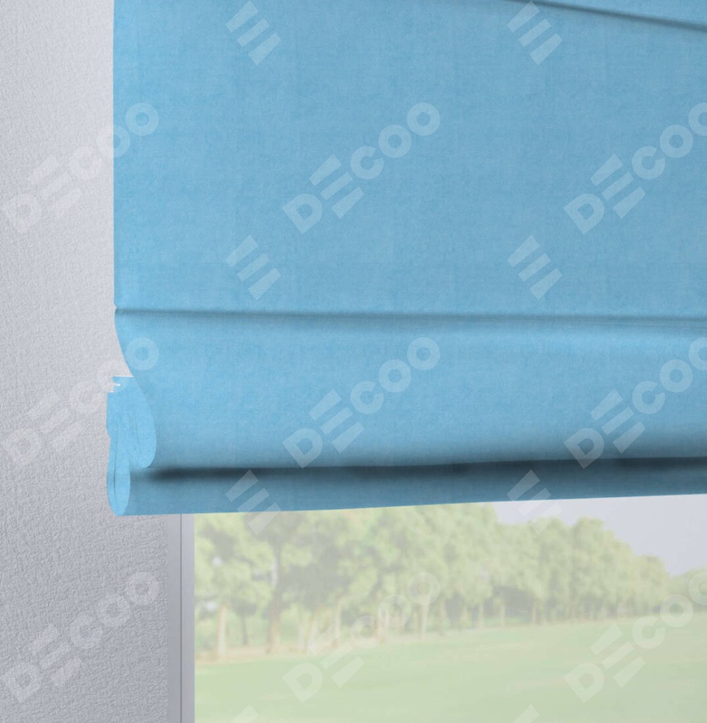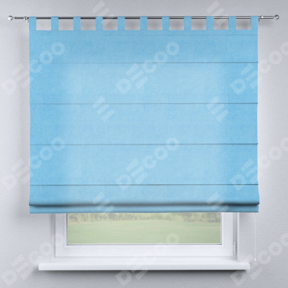 Римская штора на петлях «Кортин», ткань вельвет голубой