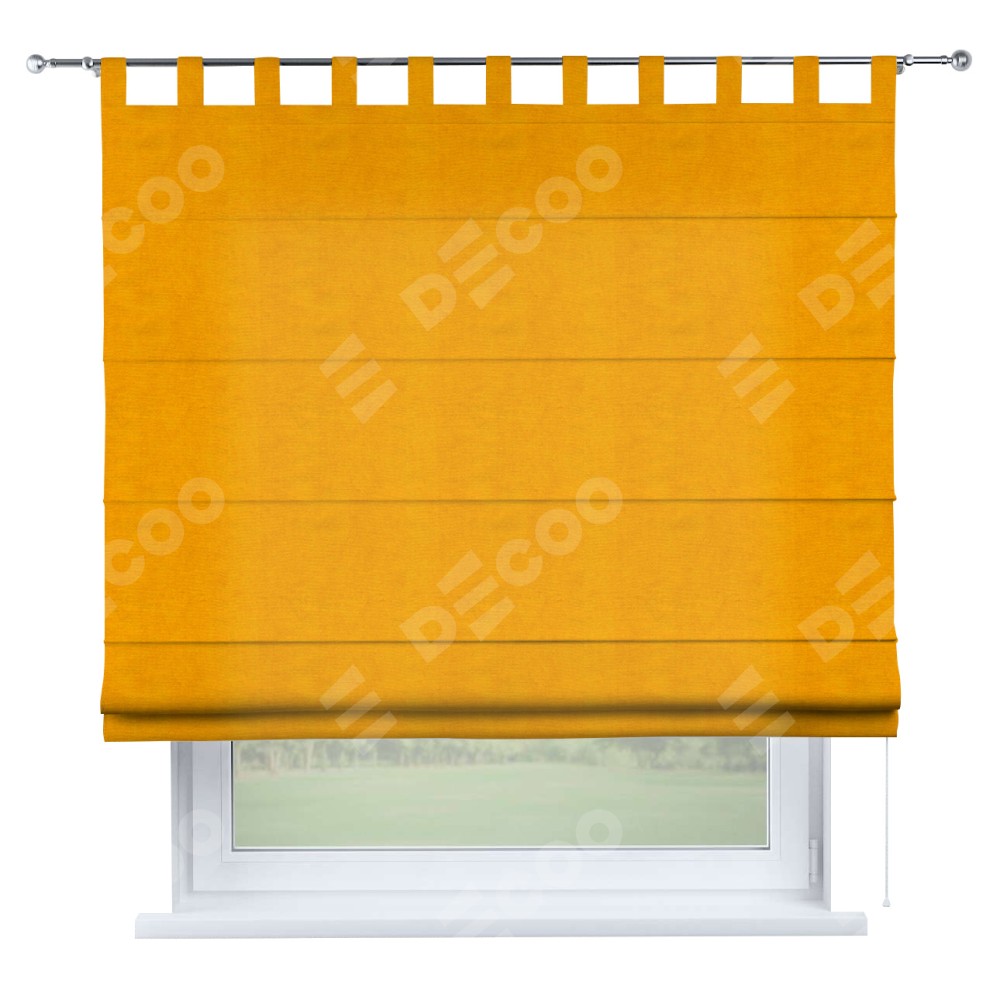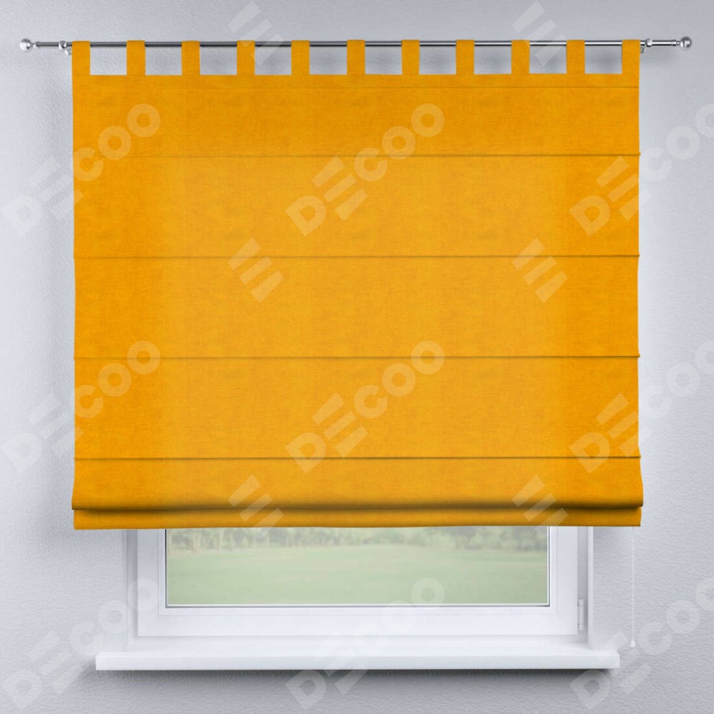 Римская штора производителя «Cortin», используется для проёма, пошита из ткани вельвет желтый, артикул ткани 85547. Данная модель пошита на петлях, комплектуется на выбор круглым карнизом и подходит для монтажа на стену. Римская штора на петлях имеет простую систему регулировки высоты, отличительным преимуществом данной модели является простой способ монтажа. Достаточно повесить ее на трубу и штора готова!