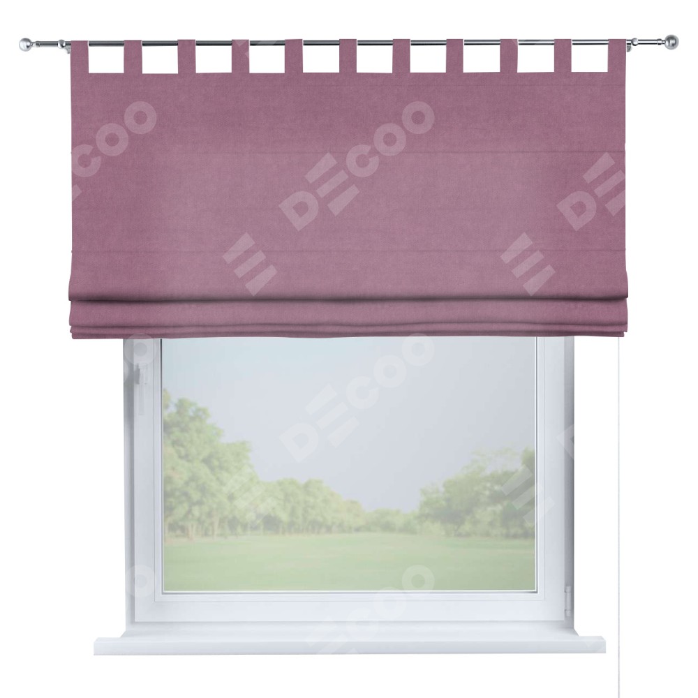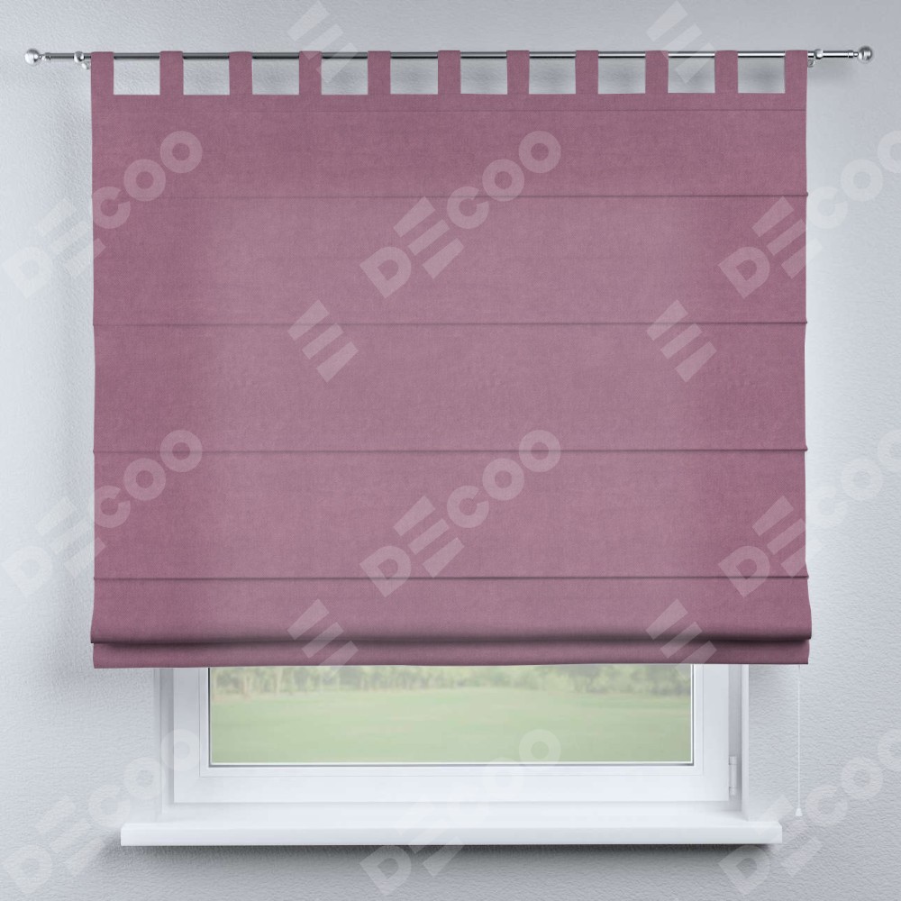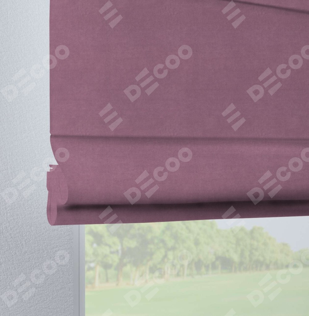 Римская штора производителя «Cortin», используется для проёма, пошита из ткани вельвет лиловый, артикул ткани 17752. Данная модель пошита на петлях, комплектуется на выбор круглым карнизом и подходит для монтажа на стену. Римская штора на петлях имеет простую систему регулировки высоты, отличительным преимуществом данной модели является простой способ монтажа. Достаточно повесить ее на трубу и штора готова!