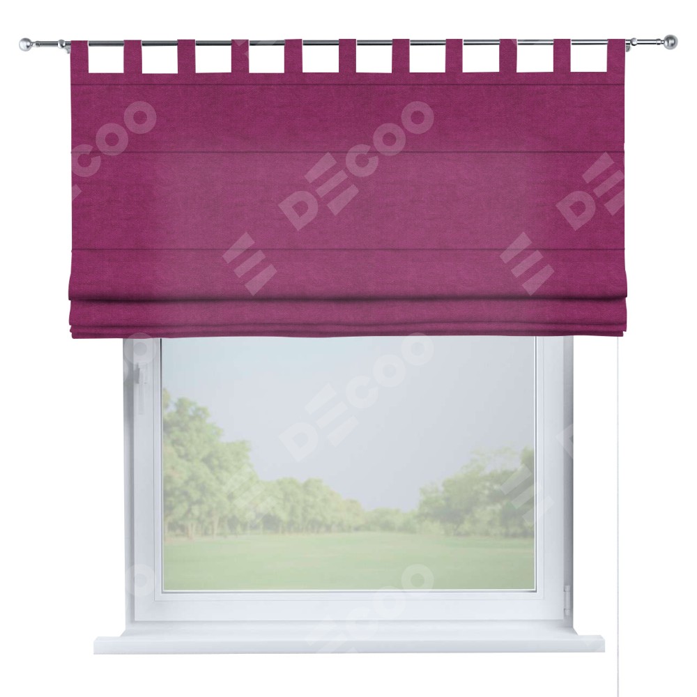 Римская штора производителя «Cortin», используется для проёма, пошита из ткани вельвет фиолетовый, артикул ткани 85552. Данная модель пошита на петлях, комплектуется на выбор круглым карнизом и подходит для монтажа на стену. Римская штора на петлях имеет простую систему регулировки высоты, отличительным преимуществом данной модели является простой способ монтажа. Достаточно повесить ее на трубу и штора готова!