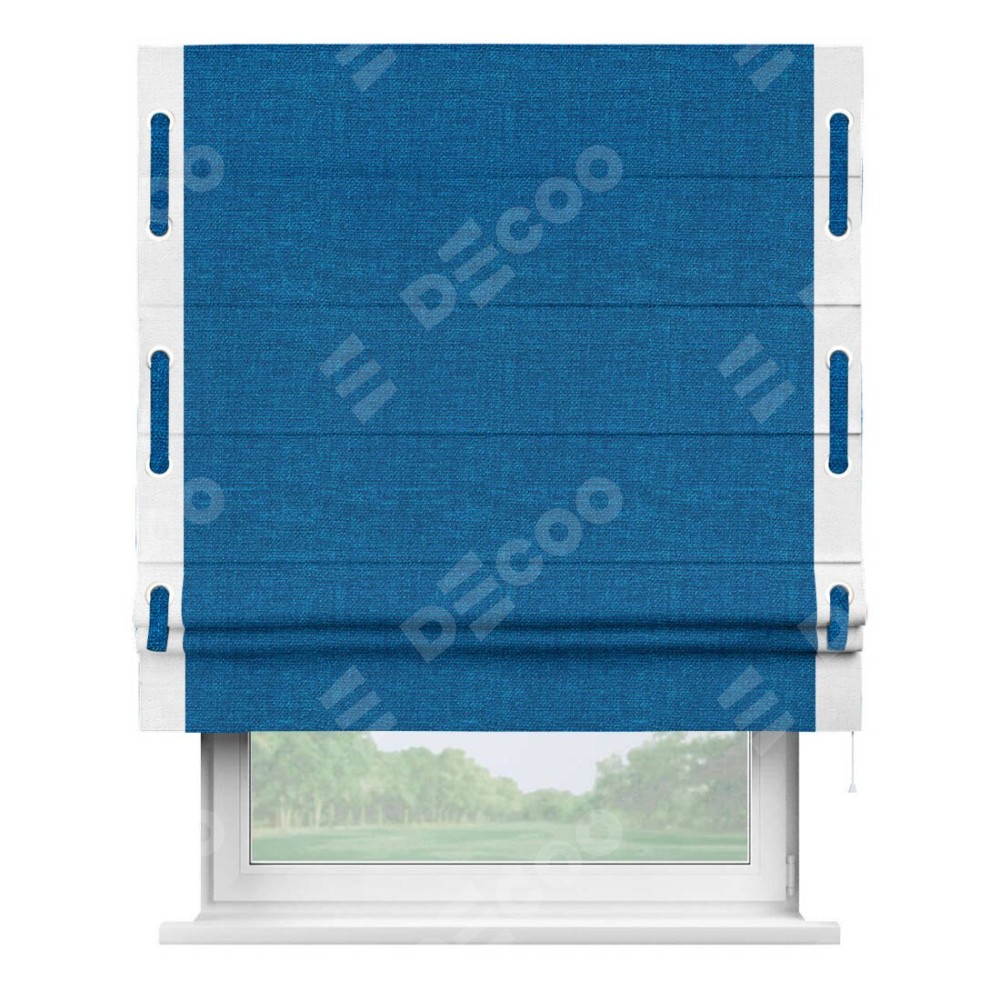 Римская штора «Кортин» с кантом Стрим Дуо (люверсы с пояском), для проема, ткань лён синий