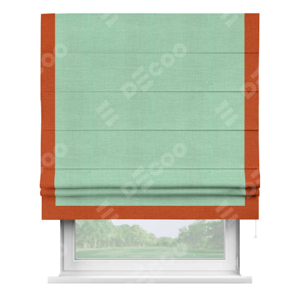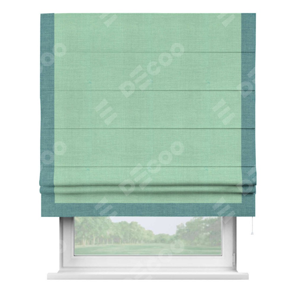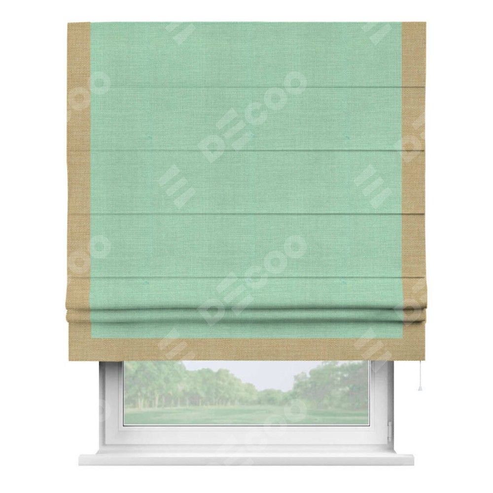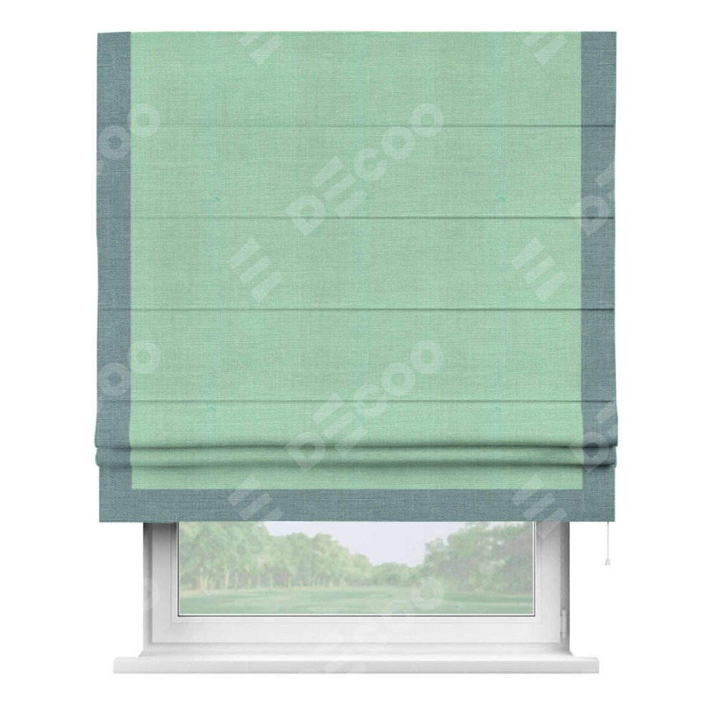 Римская штора «Кортин» с кантом Виктория, для проема, ткань лён светло-бирюзовый