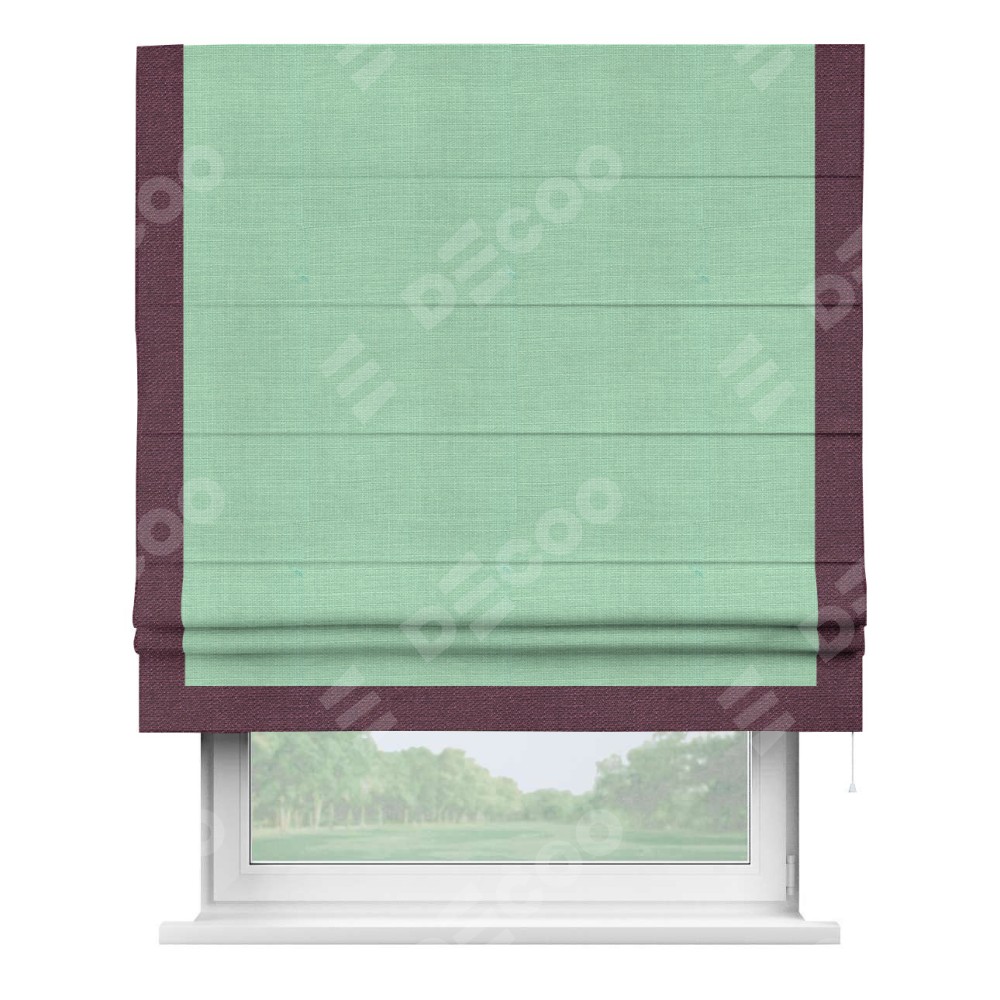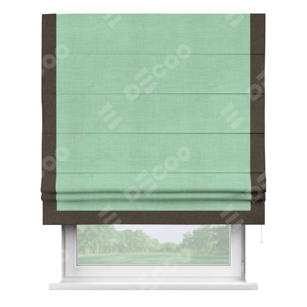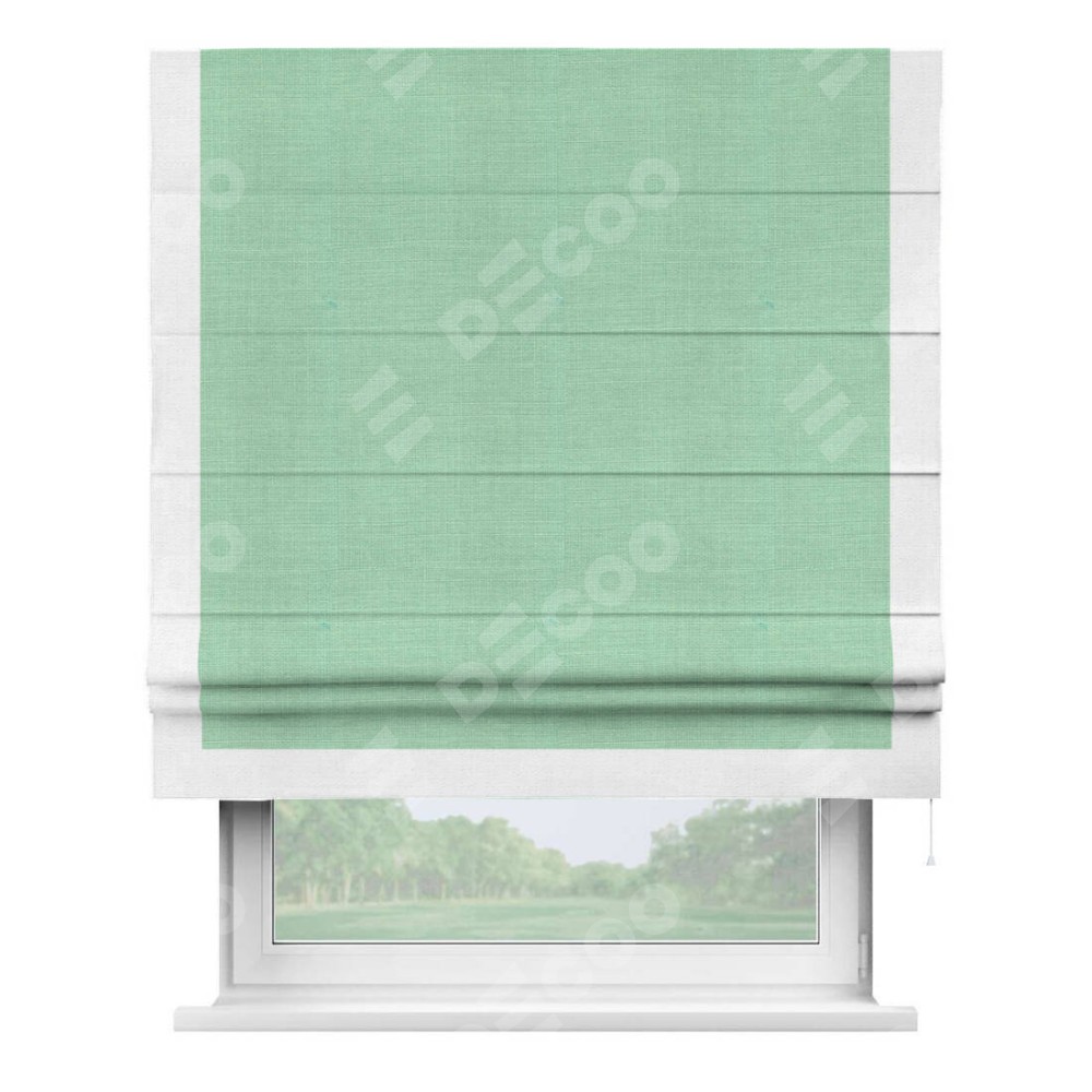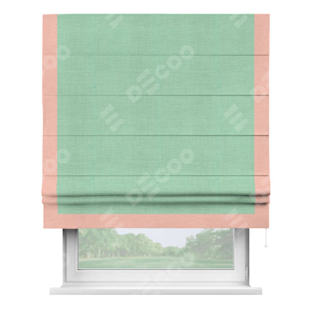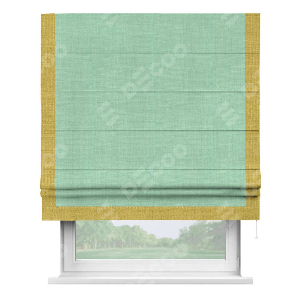 Римская штора «Кортин» с кантом Виктория, для проема, ткань лён светло-бирюзовый