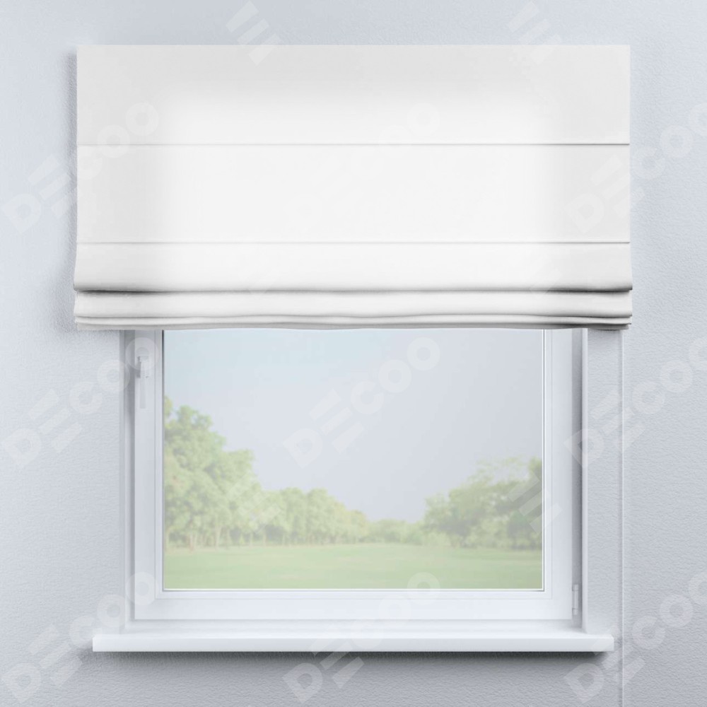 Римская штора производителя «Cortin», используется для проёма, пошита из ткани однотонная белоснежная, артикул ткани 41217. Имеет универсальный механизм и подходит для монтажа: на потолок, на стену и в нишу.