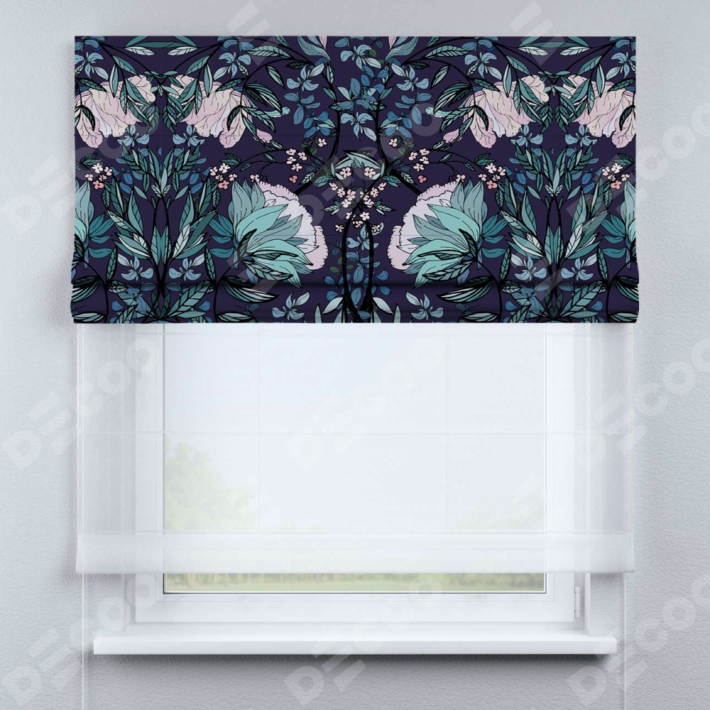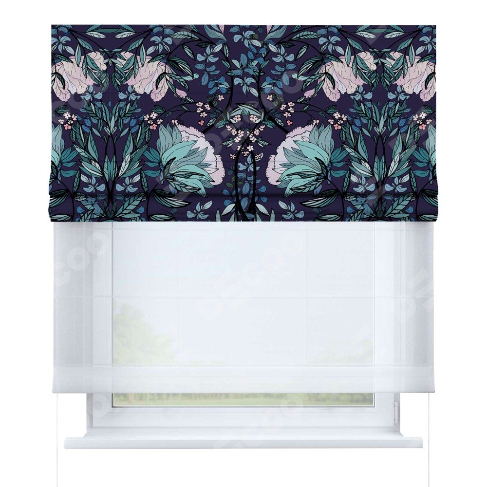 Римская штора «Кортин» день-ночь «Цветочный индиго»