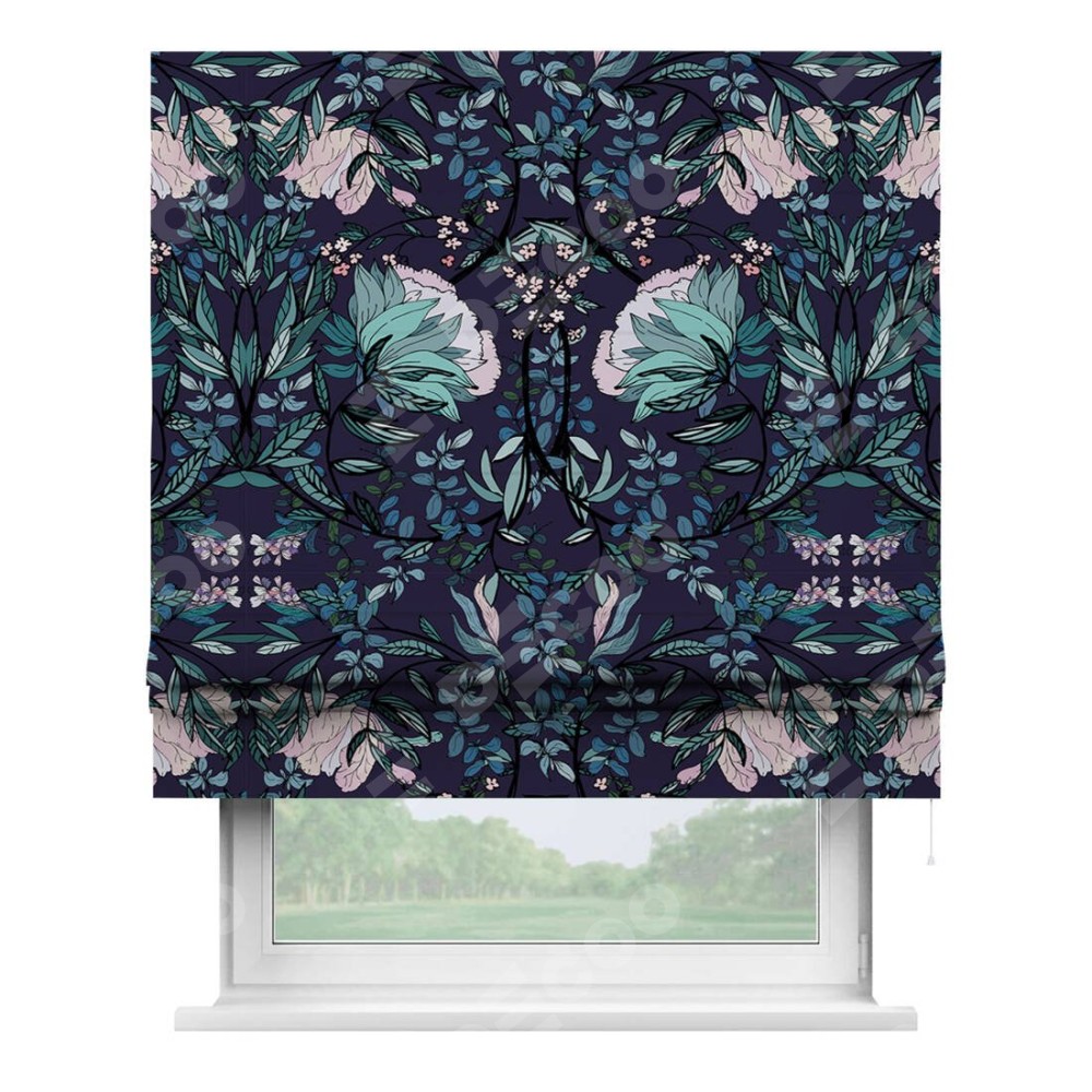 Римская штора «Кортин» для проема «Цветочный индиго»