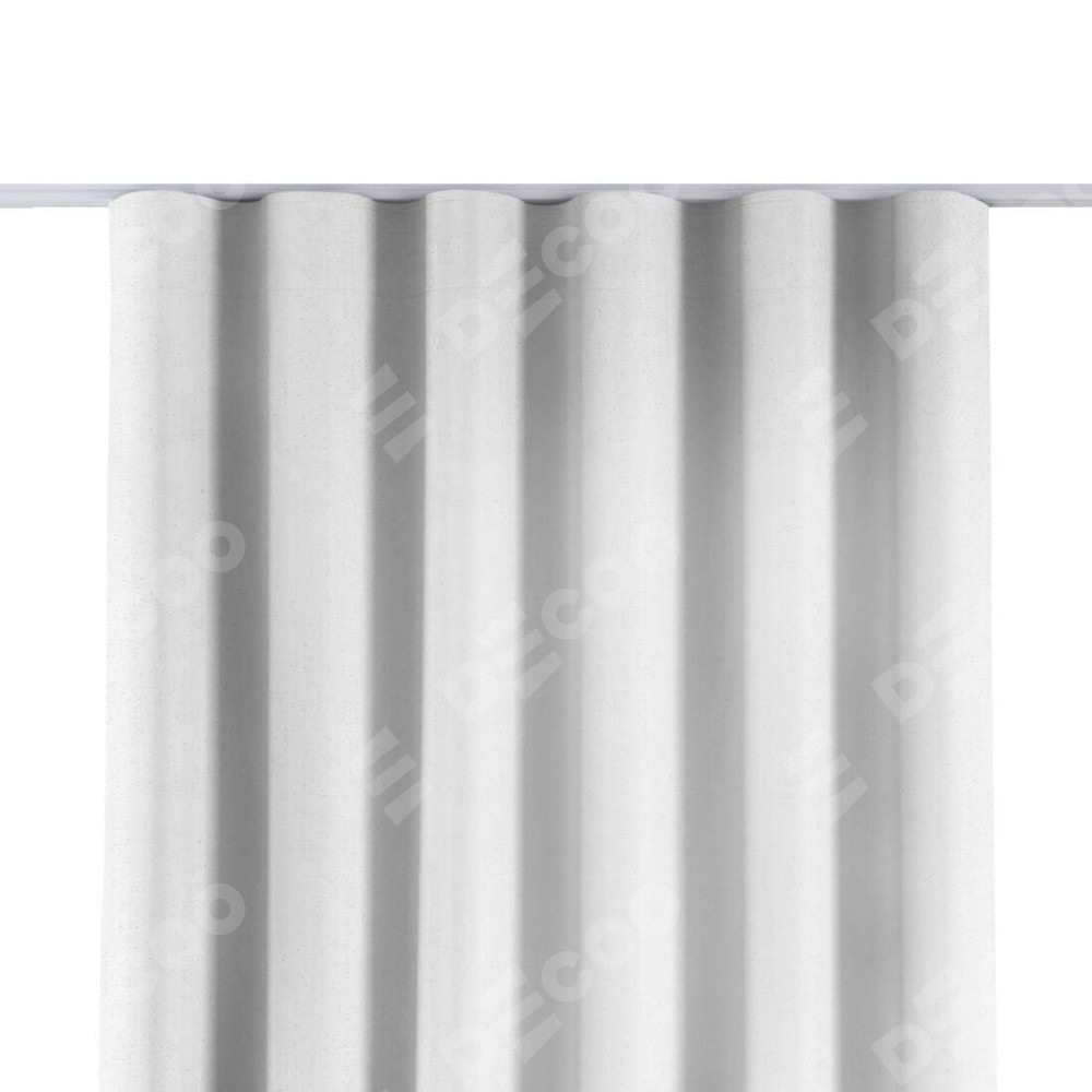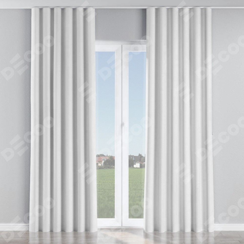 Комплект прямых штор, от производителя «Cortin», пошиты из ткани лён белый, артикул ткани 7439. С изнаночной стороны в верхней части штор пристрачивается шторная лента с декоративными складками «Волна». Для создания элегантных складок прямые шторы шьются по стандарту с коэффициентом 1:2 (на 100 см. ширины проёма 200 см. ширины ткани).
