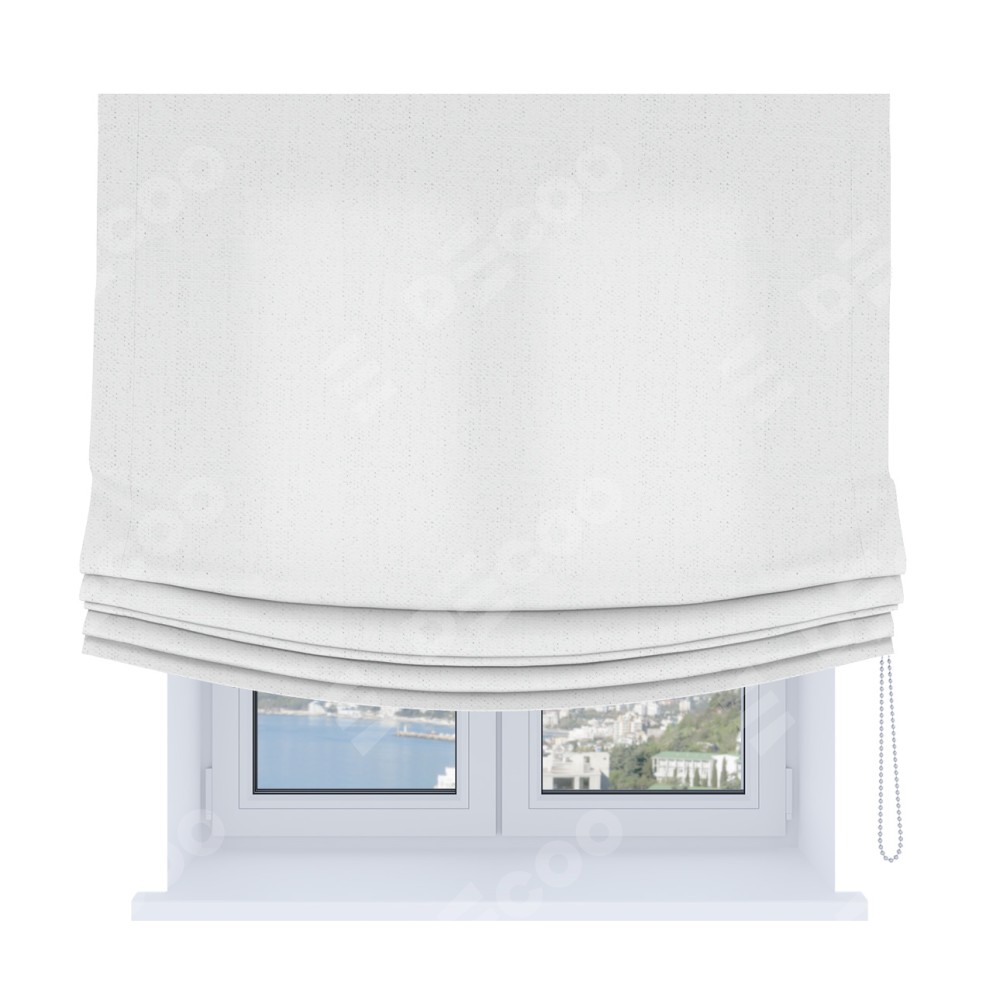 Римская штора Soft производителя «Cortin», используется для проёма, пошита из ткани лён белоснежный, артикул ткани 7438. Имеет универсальный механизм и подходит для монтажа: на потолок, на стену и в нишу. В отличие от стандартных римских штор, римская штора Soft не имеет горизонтальных вставок и нижнего отвеса. Это позволяет ткани произвольно драпироваться в свободные мягкие складки.