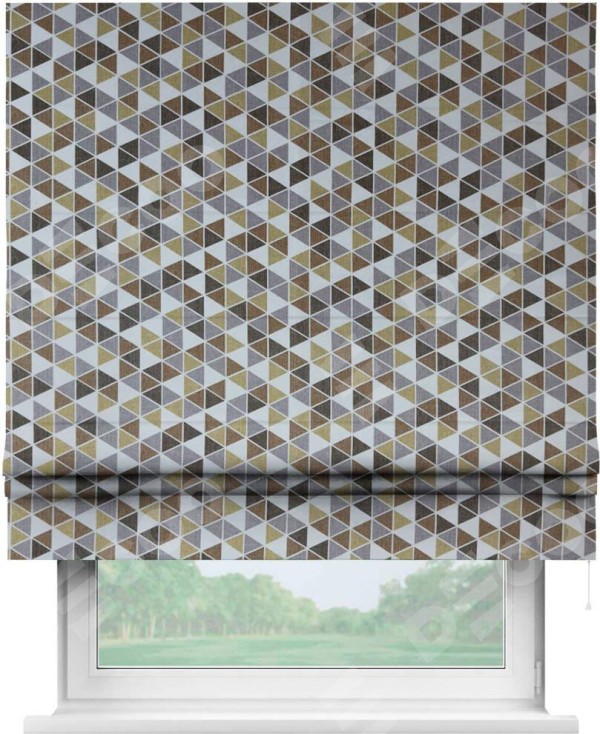 Римская штора «Кортин» для проема, ткань димаут «Треугольники коричневые»