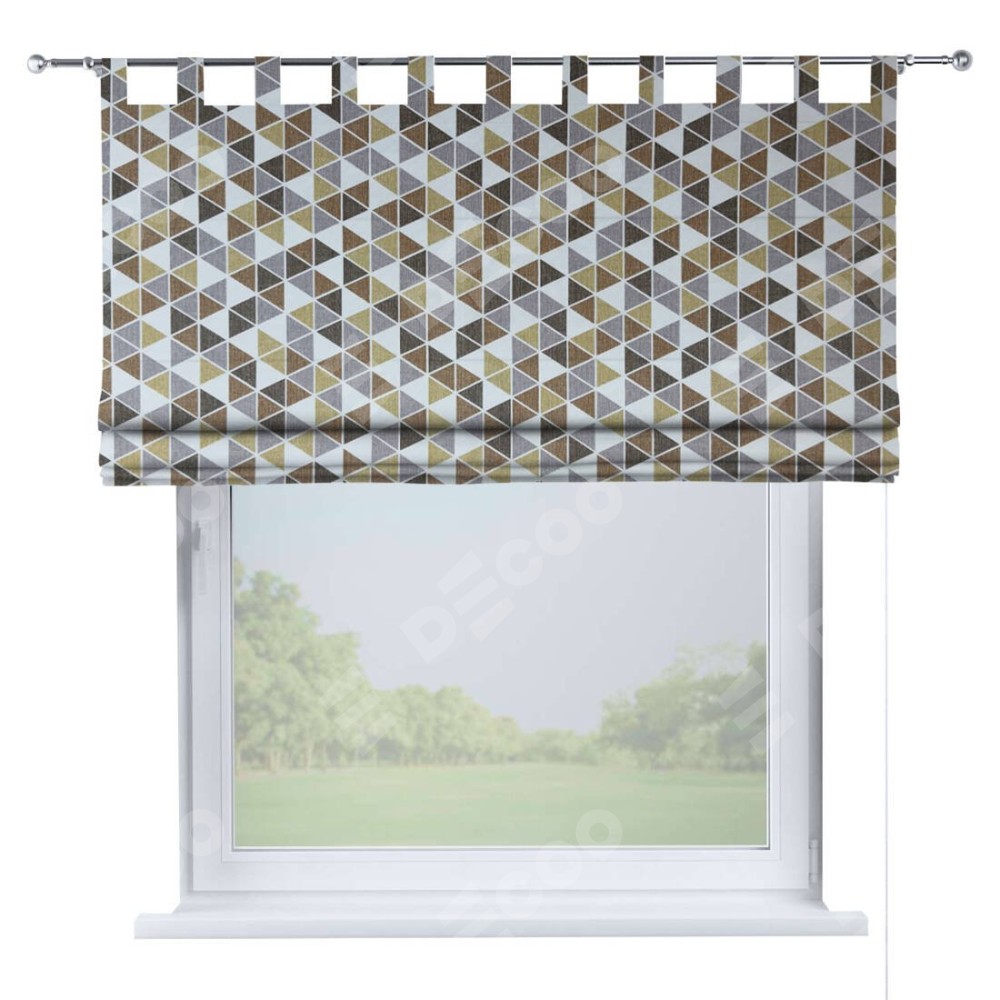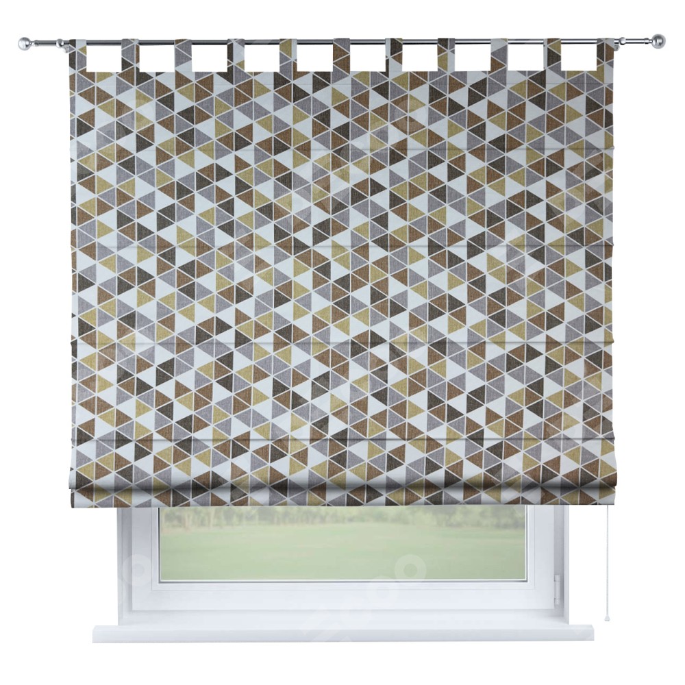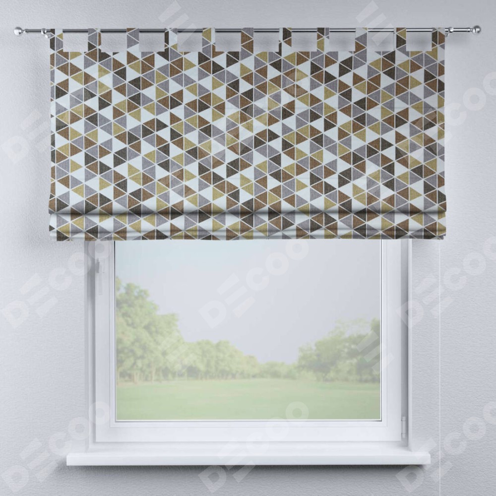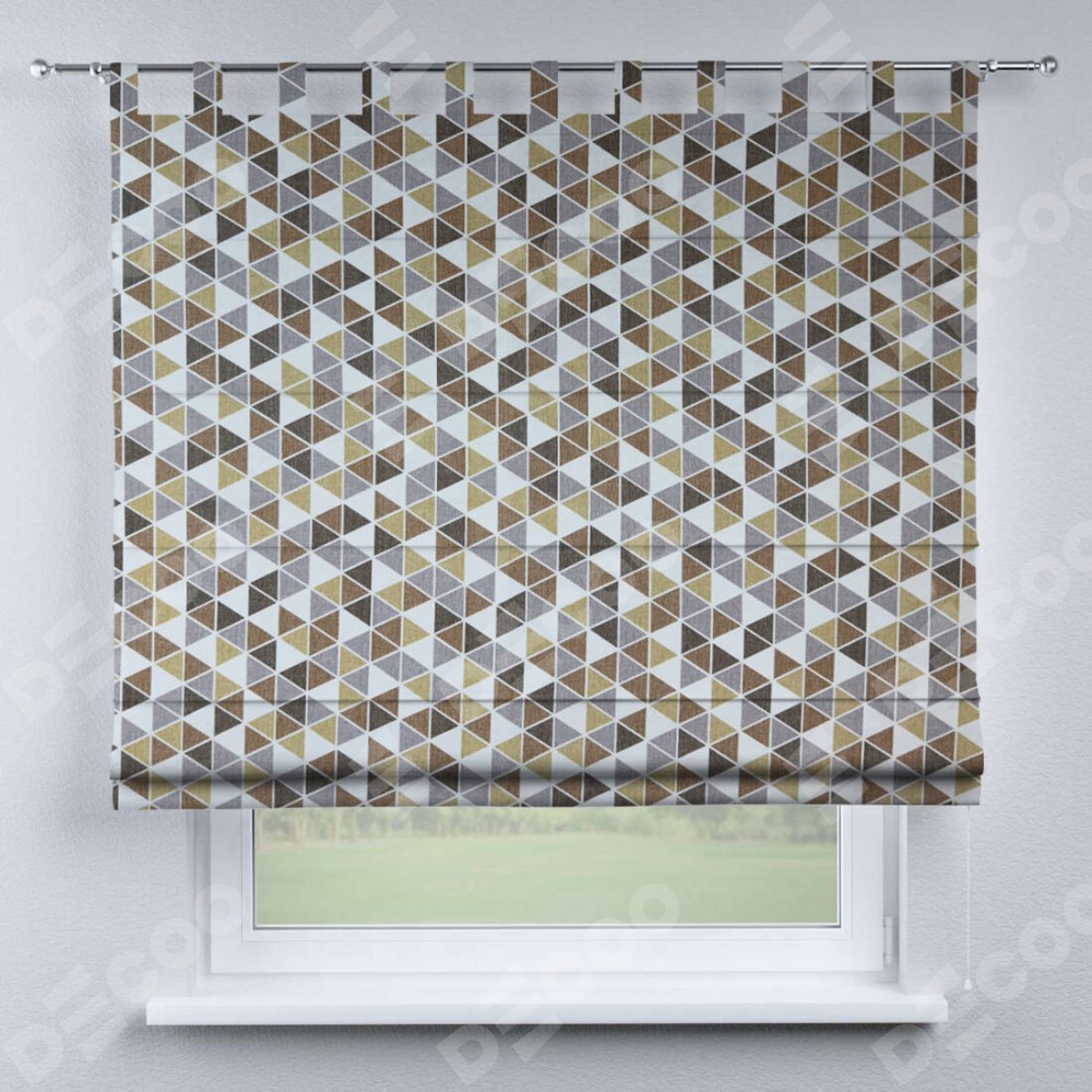 Римская штора на петлях «Кортин», ткань димаут «Треугольники коричневые»