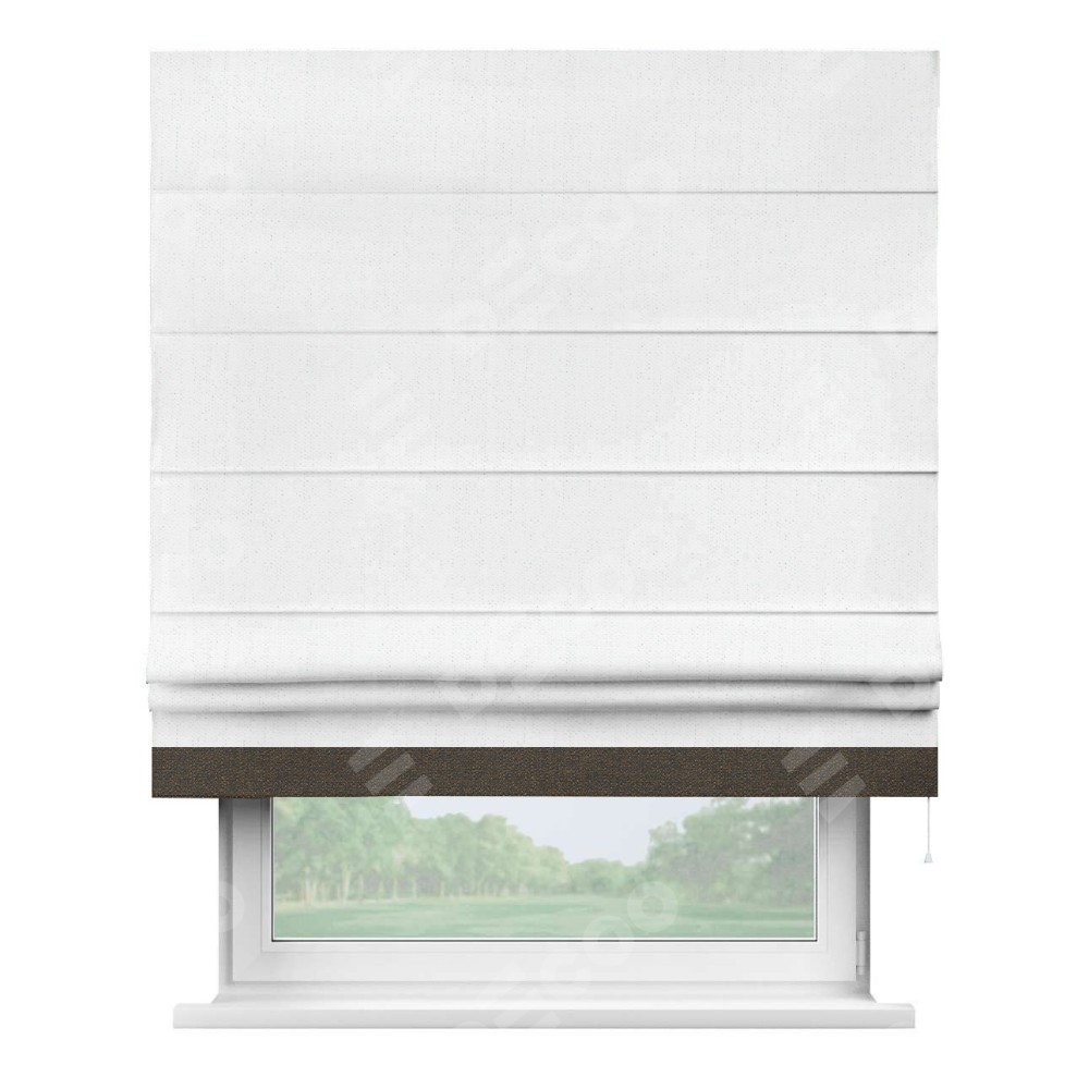Римская штора производителя «Cortin», используется для проёма, пошита из ткани лён белоснежный, артикул 7438. Отделка шторы кантом «Джестер», ткань для канта используется из льна разной расцветки на выбор. Имеет универсальный механизм и подходит для монтажа: на потолок, на стену и в нишу.