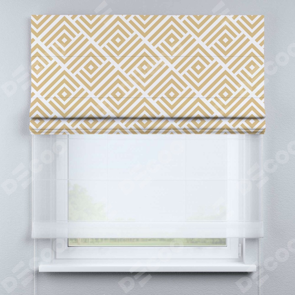 Римская штора день-ночь производителя «Cortin», используется для проёма, пошита из двух полотен, с лицевой блэкаут с нанесением сублимационной печати «Талисман», вторая ткань тюль (по стандарту комплектуется тюль белого цвета артикул V-01). Имеет универсальный механизм и подходит для монтажа: на потолок, на стену и в нишу.