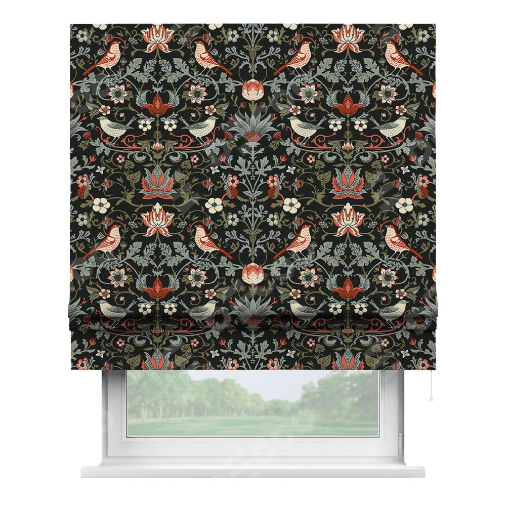 Римская штора производителя «Cortin», используется для проёма, пошита из ткани блэкаут с нанесением сублимационной печати «Зачарованные птицы». Имеет универсальный механизм и подходит для монтажа: на потолок, на стену и в нишу.