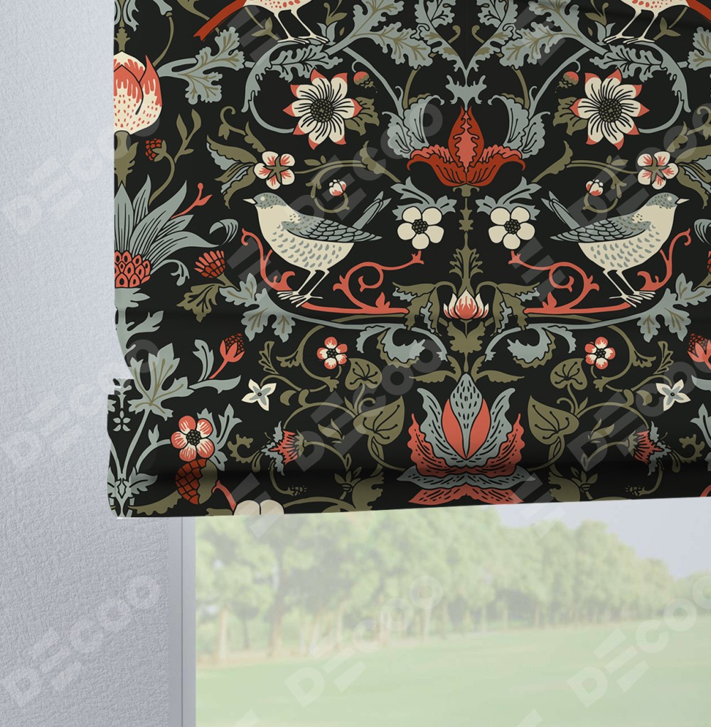 Римская штора производителя «Cortin», используется для проёма, пошита из ткани блэкаут с нанесением сублимационной печати «Зачарованные птицы». Данная модель пошита на петлях, комплектуется на выбор круглым карнизом и подходит для монтажа на стену. Римская штора на петлях имеет простую систему регулировки высоты, отличительным преимуществом данной модели является простой способ монтажа. Достаточно повесить ее на трубу и штора готова!
