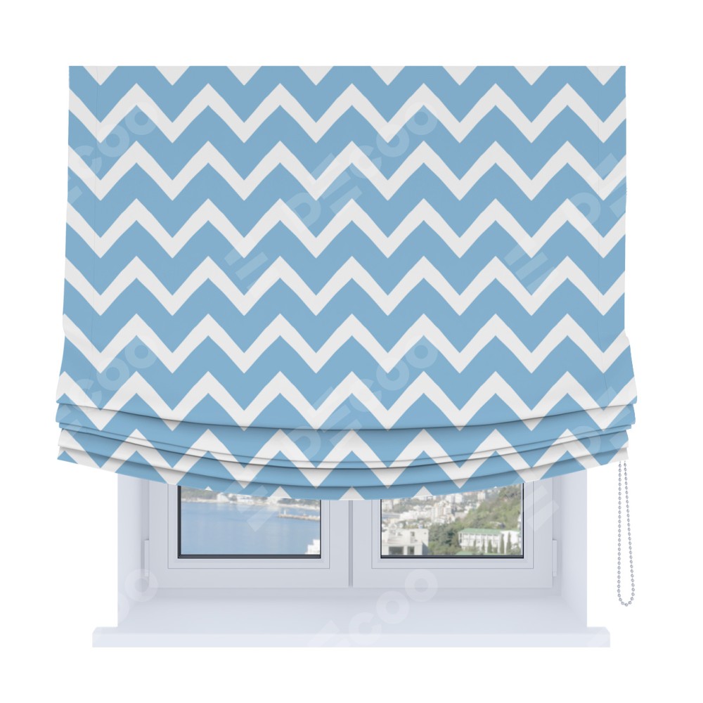 Римская штора Soft производителя «Cortin», используется для проёма, пошита из ткани блэкаут с нанесением сублимационной печати «Зигзаг средний». Имеет универсальный механизм и подходит для монтажа: на потолок, на стену и в нишу. В отличие от стандартных римских штор, римская штора Soft не имеет горизонтальных вставок и нижнего отвеса. Это позволяет ткани произвольно драпироваться в свободные мягкие складки.